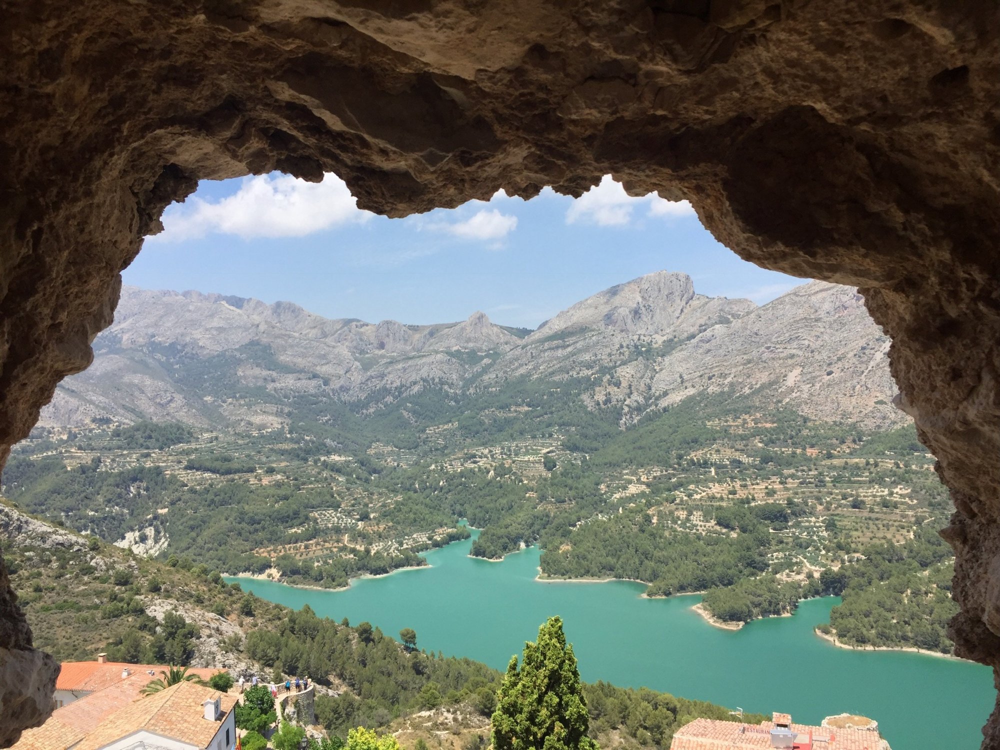 Over kronkelende bergwegen rijd je door prachtig landschap richting het schattige bergdorp Guadalest. Doordat de enige doorgaande weg naar Guadalest afgesloten was, werd de rit iets spannender dan vooraf gedacht. De alternatieve weg was smal, steil en kronkelig. En natuurlijk kom je dan een tegenligger tegen waar het eigenlijk niet past en je de afgrond naast je ziet. Gelukkig had Ronny stalen zenuwen en bereikten we zonder problemen, enkel met een iets verhoogde hartslag, Guadalest. In het dorp zijn gezellige terrassen en leuke winkeltjes, maar je komt vooral voor het kasteel wat de Moren lang geleden bouwden op de bergtop. Niet alleen het kasteel is de moeite waard, maar ook de schitterende uitzichten over het Spaanse berglandschap maakt dit één van de populairste uitjes in de omgeving van Moraira.