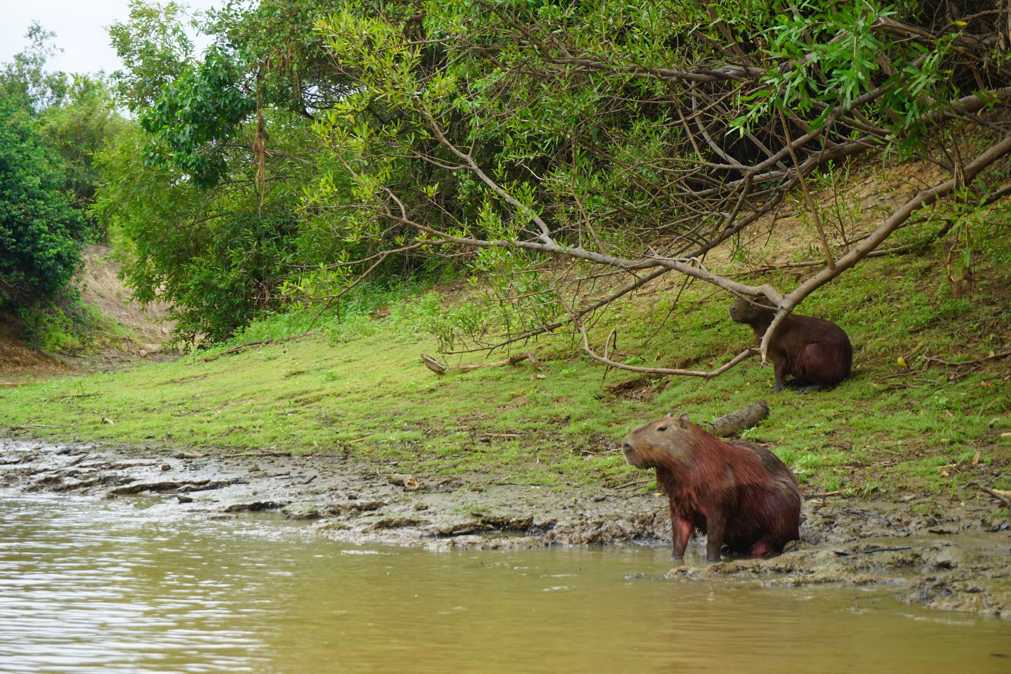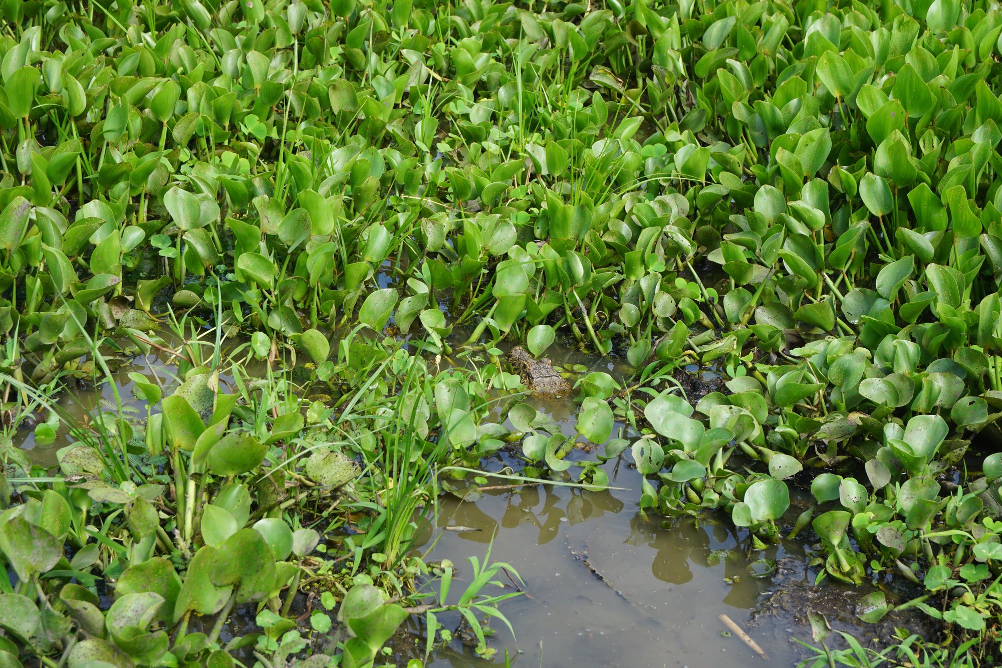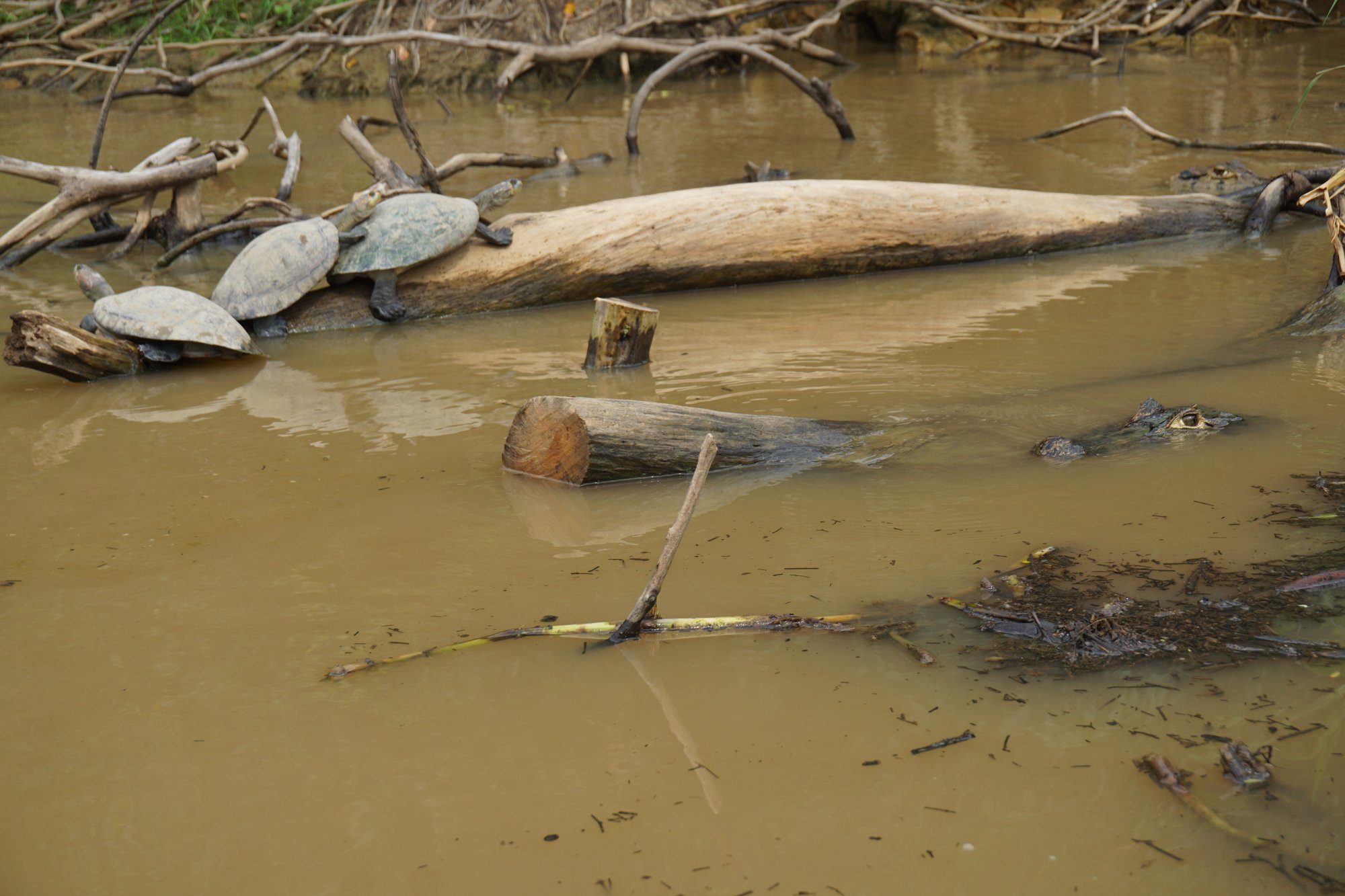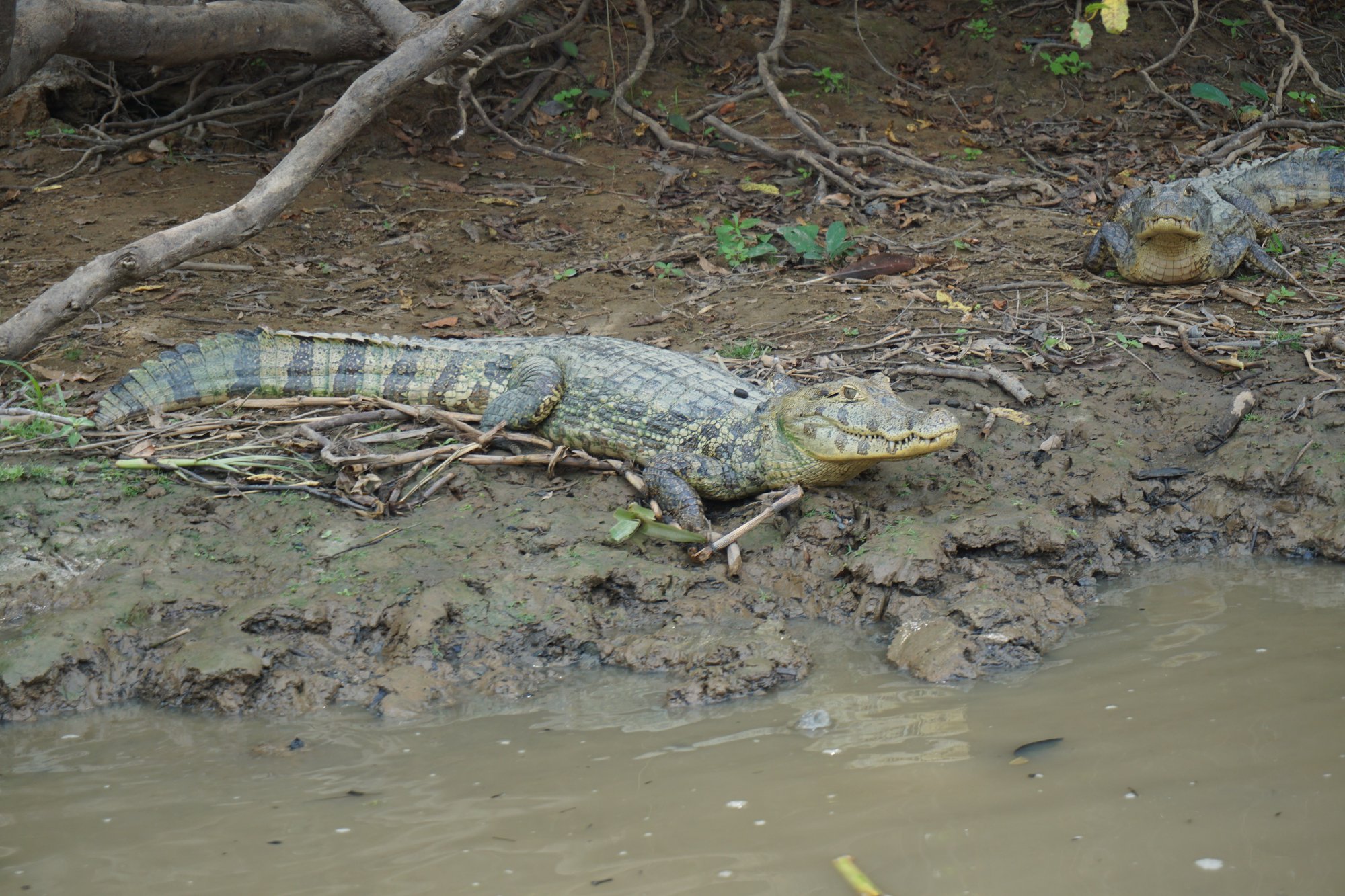 Na 3 uur rijden lunchen we in een klein dorp en daarna stappen we op een bootje. Tijdens de 3 uur durende boottocht naar de lodge zien we al onwijs veel dieren. Allerlei soorten vogels, apen en capibara's, maar vooral de hoeveelheid krokodillen valt op. Wow, de bruingekleurde rivier zit er echt vol mee! Ook de capibara's zijn erg leuk. Dit is het grootste knaagdier ter wereld en ze zien eruit als een mix tussen een cavia en een varken. Ik vind ze lief! Regelmatig zien we een familietje langs de waterkant met schattige jonkies.