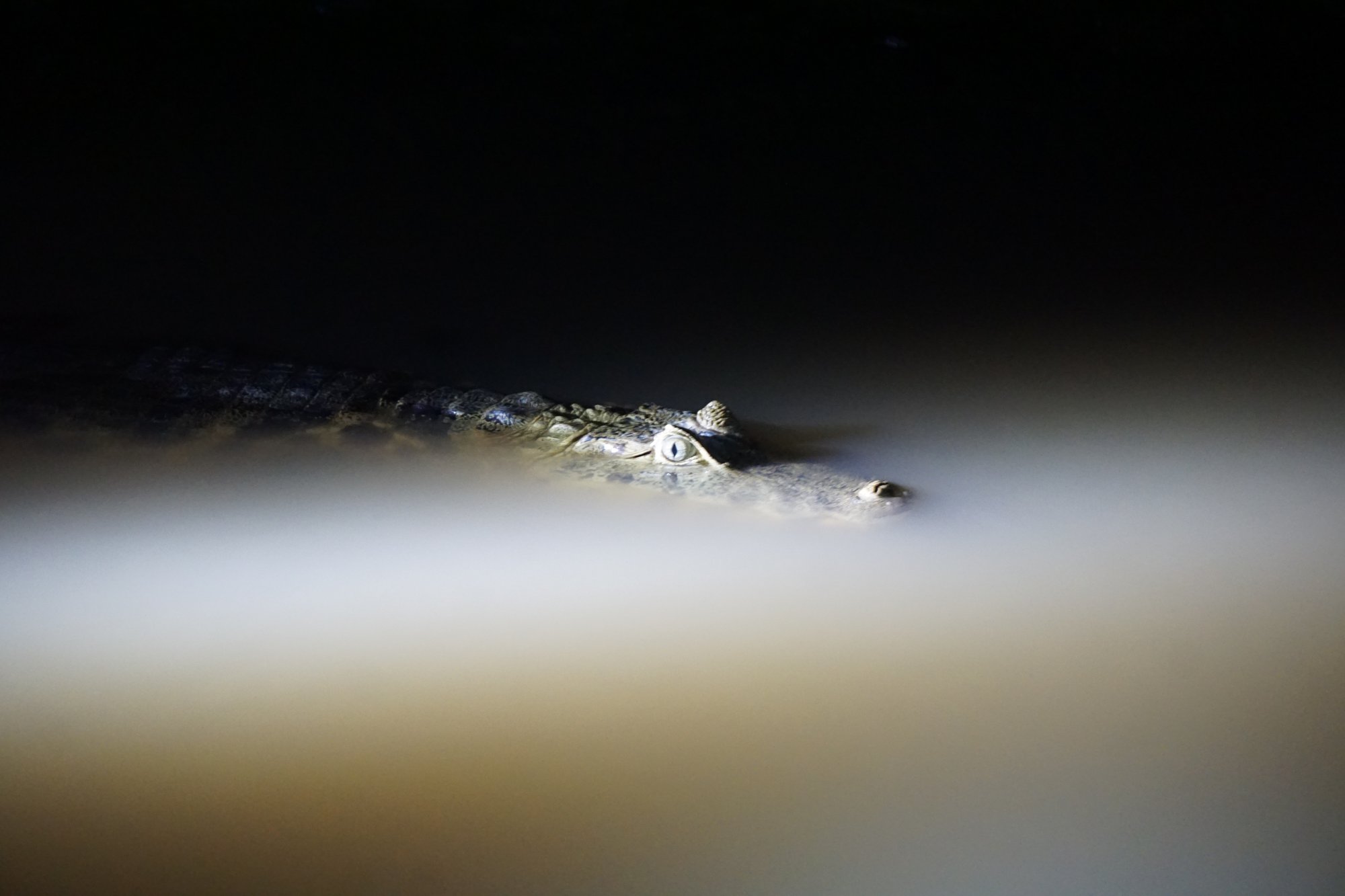 In de avond gaan we nog een keer met het bootje het water op. De kaaimannen zijn na zonsondergang actiever en het is de tijd dat sommige dieren gaan jagen. Met een zaklamp schijnen we over de rivier en we zien echt tientallen ogen oplichten. Dat zijn de krokodillen! Het zijn echt goede verstoppers, waardoor je ze overdag lang niet altijd ziet (terwijl ze er wel zijn!). Echt tof - en een beetje griezelig - om er in het donker in zo'n klein bootje vlak langs te varen...