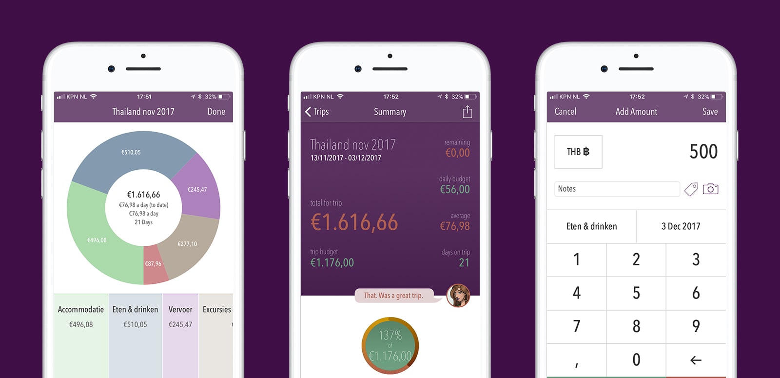 Je dagelijkse uitgaven op reis bijhouden is een eitje met Trail Wallet. Je kunt per reis een ‘trip’ aanmaken, de begin- en einddatum instellen en aangeven in welke valuta je betaalt. Ook stel je een dagbudget of totaalbudget voor je gehele reis in. Op die manier heb je altijd inzicht in hoeveel je nog te besteden hebt of juist met welk bedrag je je dagbudget al overschreden hebt! Door bij iedere uitgave een categorie aan te geven, weet je achteraf precies hoeveel geld je hebt uitgegeven aan eten & drinken, overnachtingen, vervoer en ga zo maar door. Een must have voor backpackers die letten op hun centen.