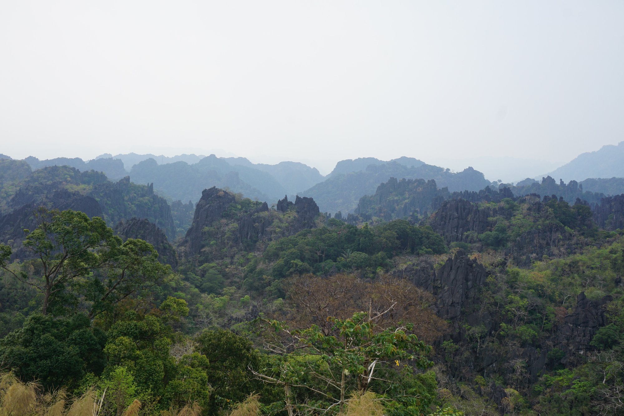 Op de route van dag 1 kom je langs diverse grotten. Vooral tot het dorpje Mahaxay zijn er meerdere grotten die je kunt bezoeken, zoals de Tham Pha Fa grot en de Tham Nang AEN grot. Wij besluiten om deze grotten over te slaan, omdat we al wat later vertrokken zijn en ze niet de mooiste zijn van de loop. Op dag 1 kom je ook langs het surrealistische landschap dat is ontstaan door een enorme stuwdam bij Nakai. Hele gebieden staan onder water met daarin ontelbaar veel afgestorven bomen. Ik denk niet dat ik het per se een mooi landschap vind, maar fascinerend is het wel!