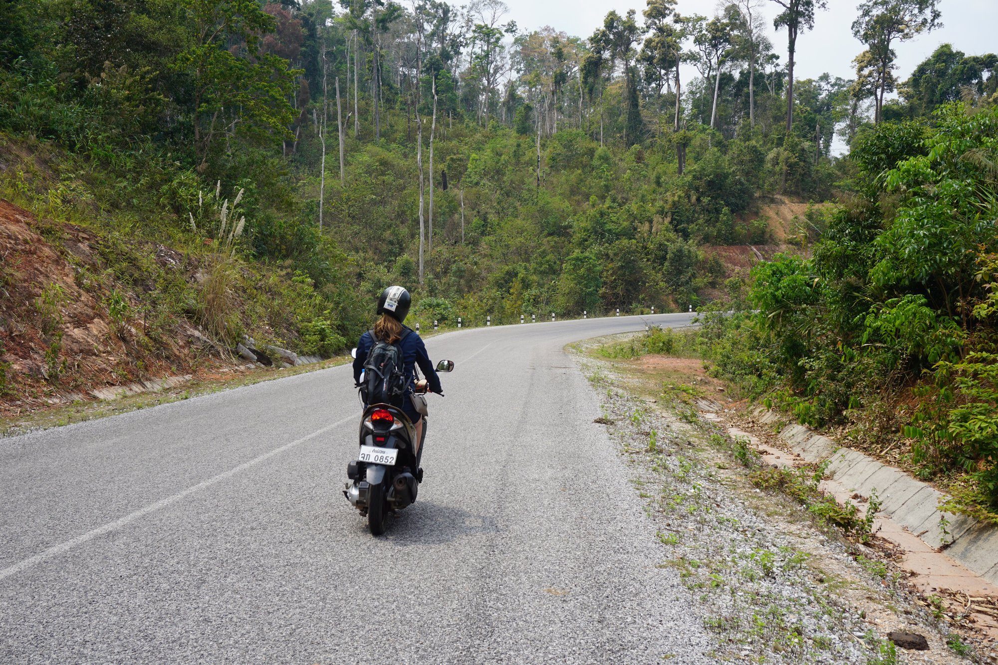 Vandaag rijden we tot het plaatsje Thalang, wat ongeveer 100 kilometer is. Als je eenmaal op route 12 bent, hoef je eigenlijk alleen maar de weg te volgen. Let wel even op bij de kruising op ongeveer de helft van de route. Je moet hier rechtdoor rijden richting Nakai en niet de route 12 blijven volgen, want dan ga je naar de grens met Vietnam. Als je rechtdoor rijdt op die kruising, kom je op de weg 1E en die volg je tot Thalang.