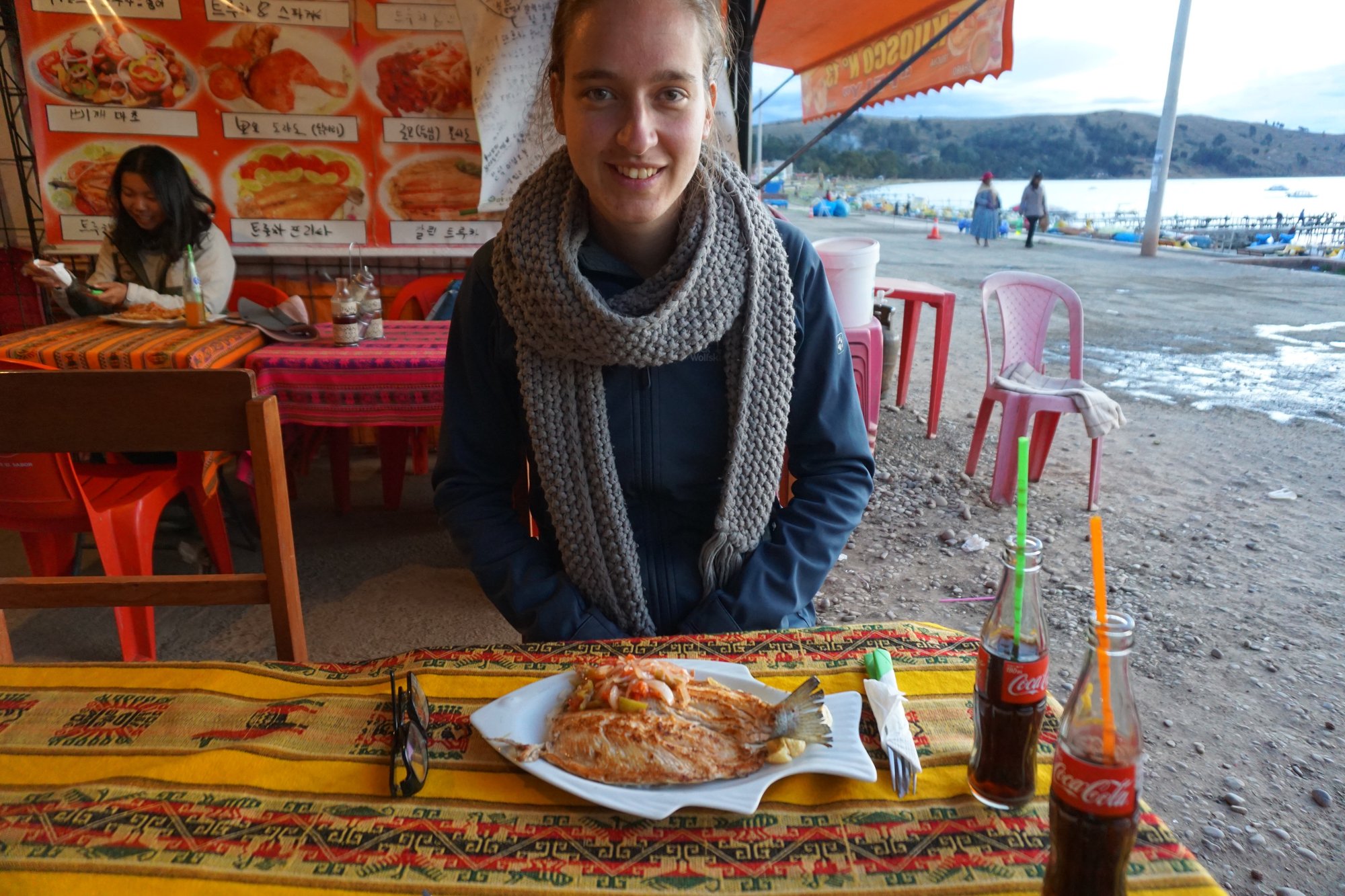 Eindelijk was eten & drinken een keer niet onze grootste kostenpost! Toch vielen de prijzen van eten en drinken me best wel tegen. Andere reizigers vertelden ons steeds dat Bolivia zo goedkoop was, zeker in vergelijking met Colombia en Peru. Toch vond ik de prijzen in restaurants - met name op de toeristische plekken - helemaal niet zo laag. Voor een ontbijtje met koffie ben je in een restaurant zomaar 4 à 5 euro kwijt. Een biertje kost al snel 3 euro en een hoofdgerecht in een restaurant vind je niet makkelijk voor minder dan 5 euro. Wat wel heel goedkoop én lekker is: een verse jus d'orange van een straatverkoper. Vaak maar een halve euro en zó lekker! Iets vaker sapjes en iets minder biertjes drinken dus. ;-)