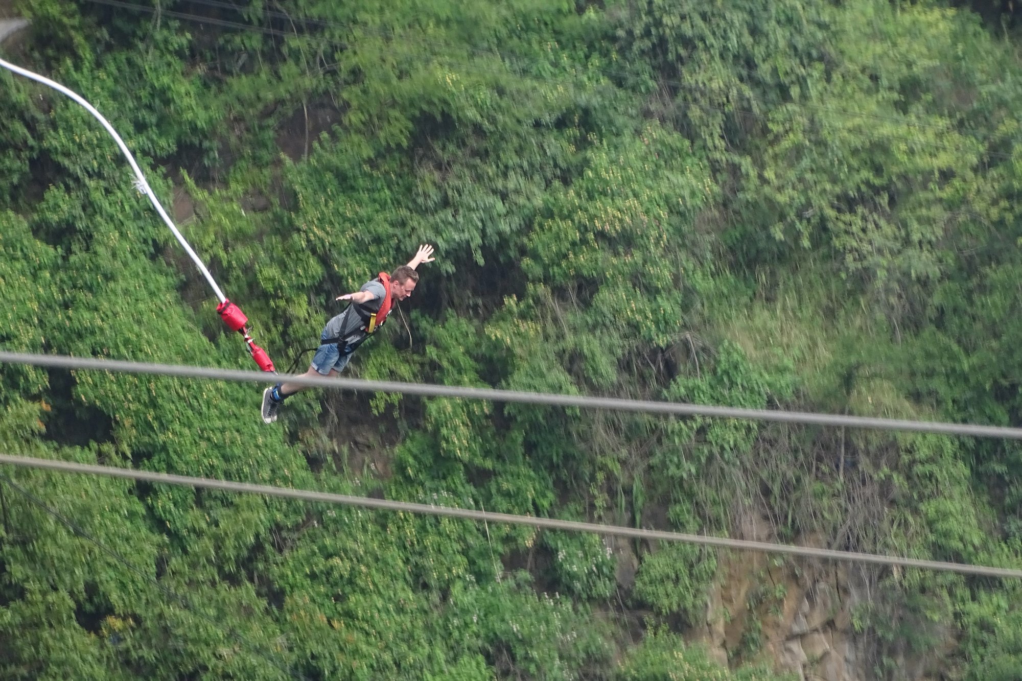 - De Victoria Falls Bridge is 126 meter hoog en loopt over de woeste Zambezi rivier. Je springt 111 meter naar beneden, dus er is nog ruim voldoende afstand tussen jou en het water. De vrije val duurt ongeveer 4 seconden. Genoeg voor heel veel kriebels in je buik!