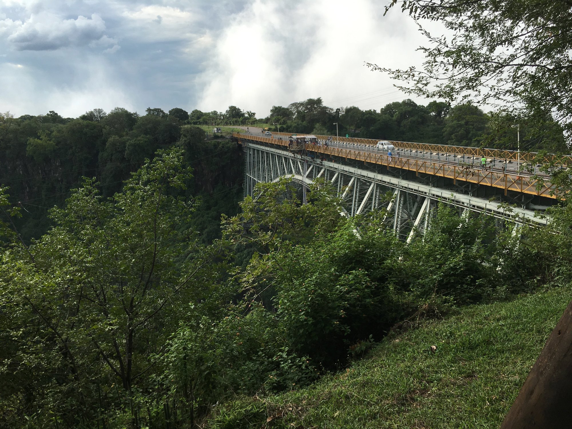 - De Victoria Falls Bridge ligt precies op de grens tussen Zimbabwe en Zambia. Daarom moet je je paspoort niet vergeten als je gaat bungeejumpen! Ook als je wilt gaan kijken bij iemand die gaat springen, moet je je paspoort meenemen. Zonder paspoort mag je de brug niet op.