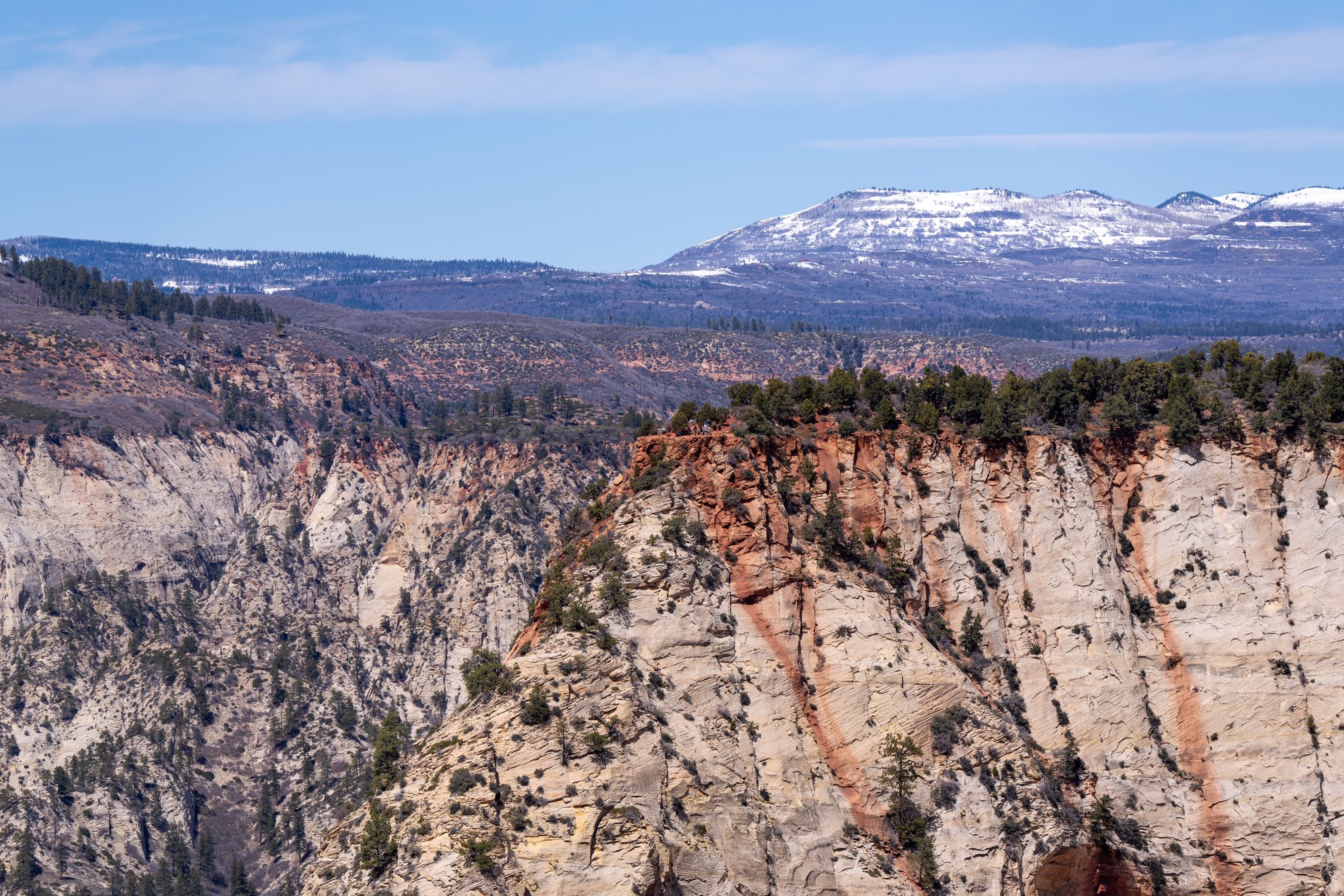 Vanaf de Stave Springs Trailhead start de 6 kilometer lange hike naar Cable Mountain. We beginnen in het bos en klimmen de eerste kilometers geleidelijk verder omhoog. Het wordt wat minder dichtbegroeid om ons heen en na een tijdje krijgen we af en toe uitzicht op de bergen in de verte. Het is vrij makkelijk wandelen over een zandpad, maar wel even opletten dat je je schoen niet verliest bij de modderige stukken. In deze tijd van het jaar (april) smelt de sneeuw en dat zorgt voor deze glibberige paadjes. Her en der is er nog wel wat sneeuw te vinden, maar het meeste is inmiddels gesmolten.