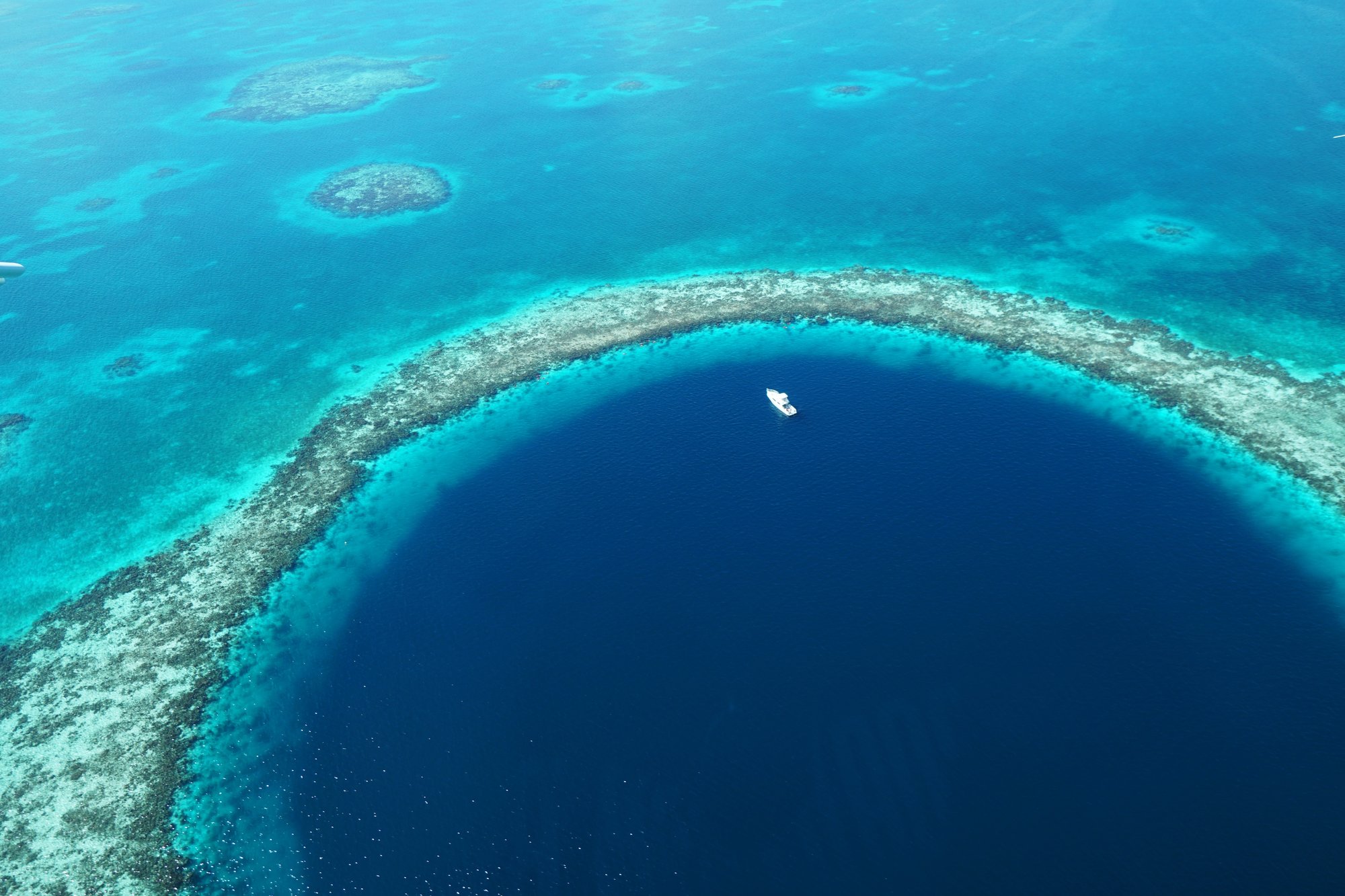 Zie dit schitterende natuurfenomeen op zijn best Vlieg over de Great Blue Hole en zie dit schitterende natuurfenomeen op zijn best