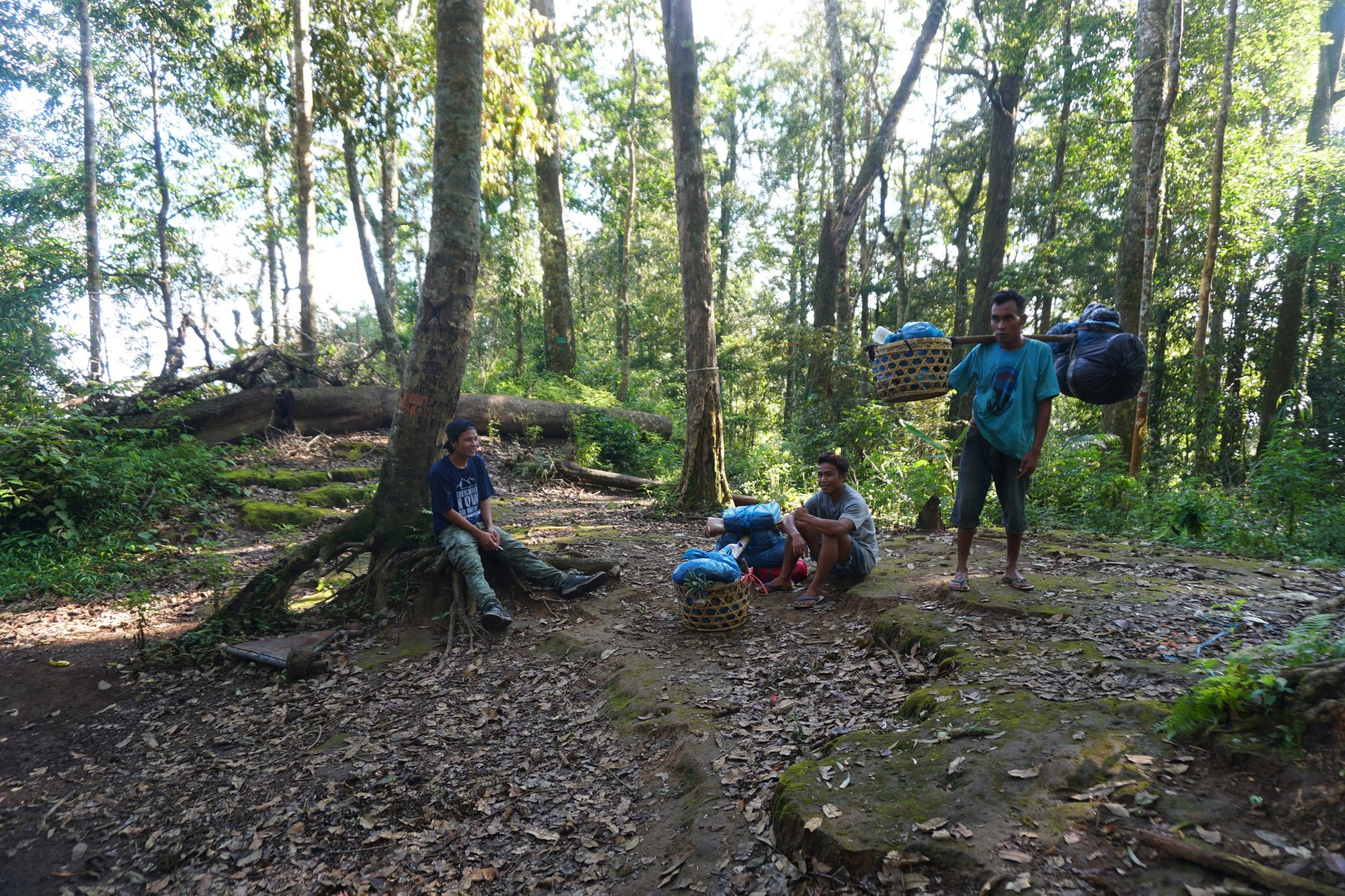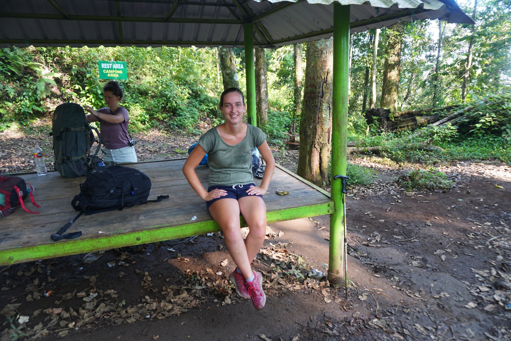 Als we rond 11:15 uur bij Pos 1 arriveren, zijn onze dragers al druk bezig met het bereiden van de lunch. Het smaakt weer super en na een uurtje pauze is het tijd om het laatste stuk van de hike te volbrengen. We nemen afscheid van onze dragers en drukken ze een mooie fooi in hun handen. Wat hebben we respect voor deze mannen!