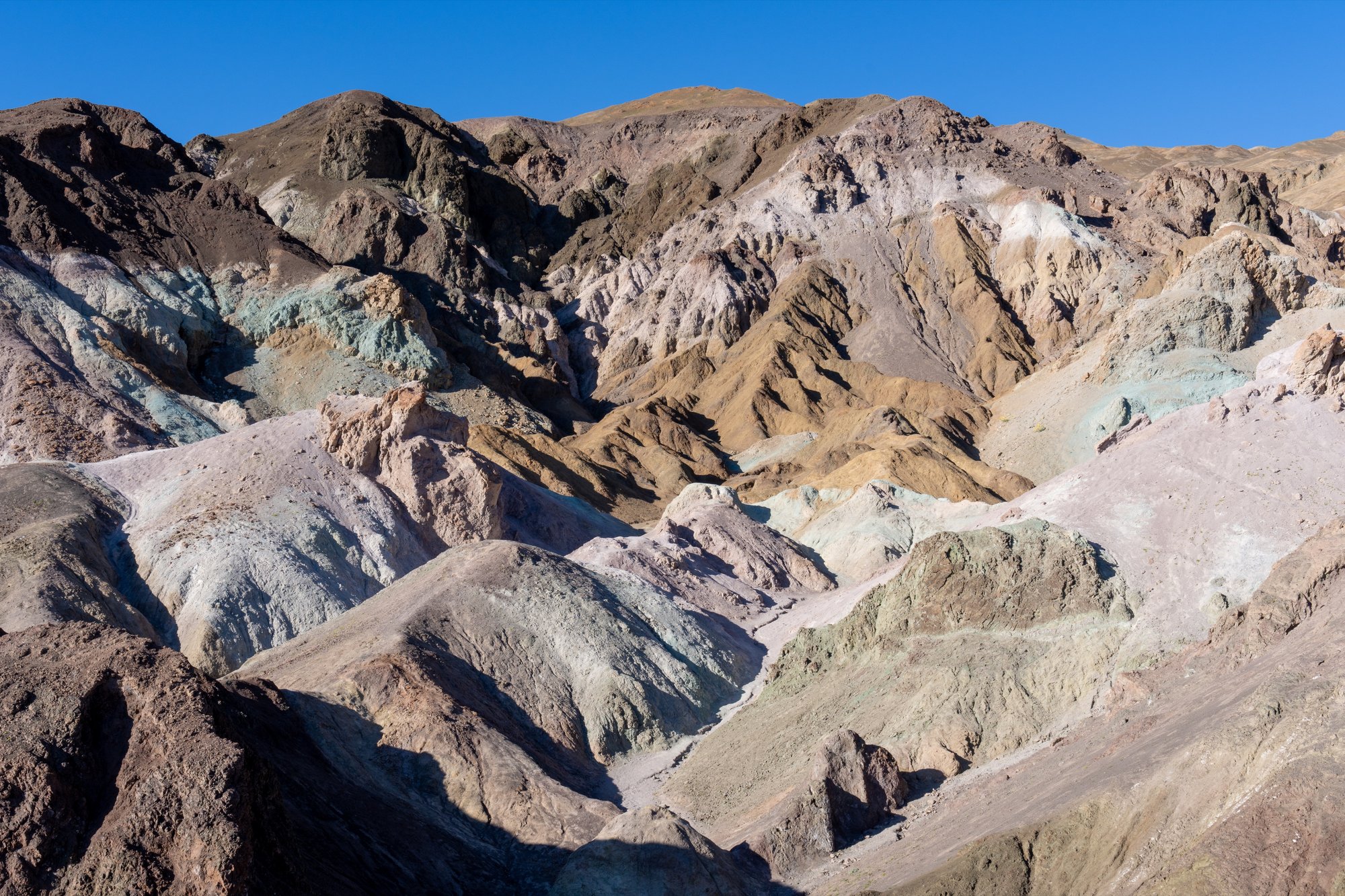 Het is een beetje vergelijkbaar met de heuvels bij Zabriskie Point, maar nu rijd je tussen de kegelvormige heuvels in plaats van er bovenop te kijken. Het is een goed alternatief voor hiken in Death Valley - wat in de hitte niet altijd even aantrekkelijk is - want op deze manier kom je ook echt IN het landschap.