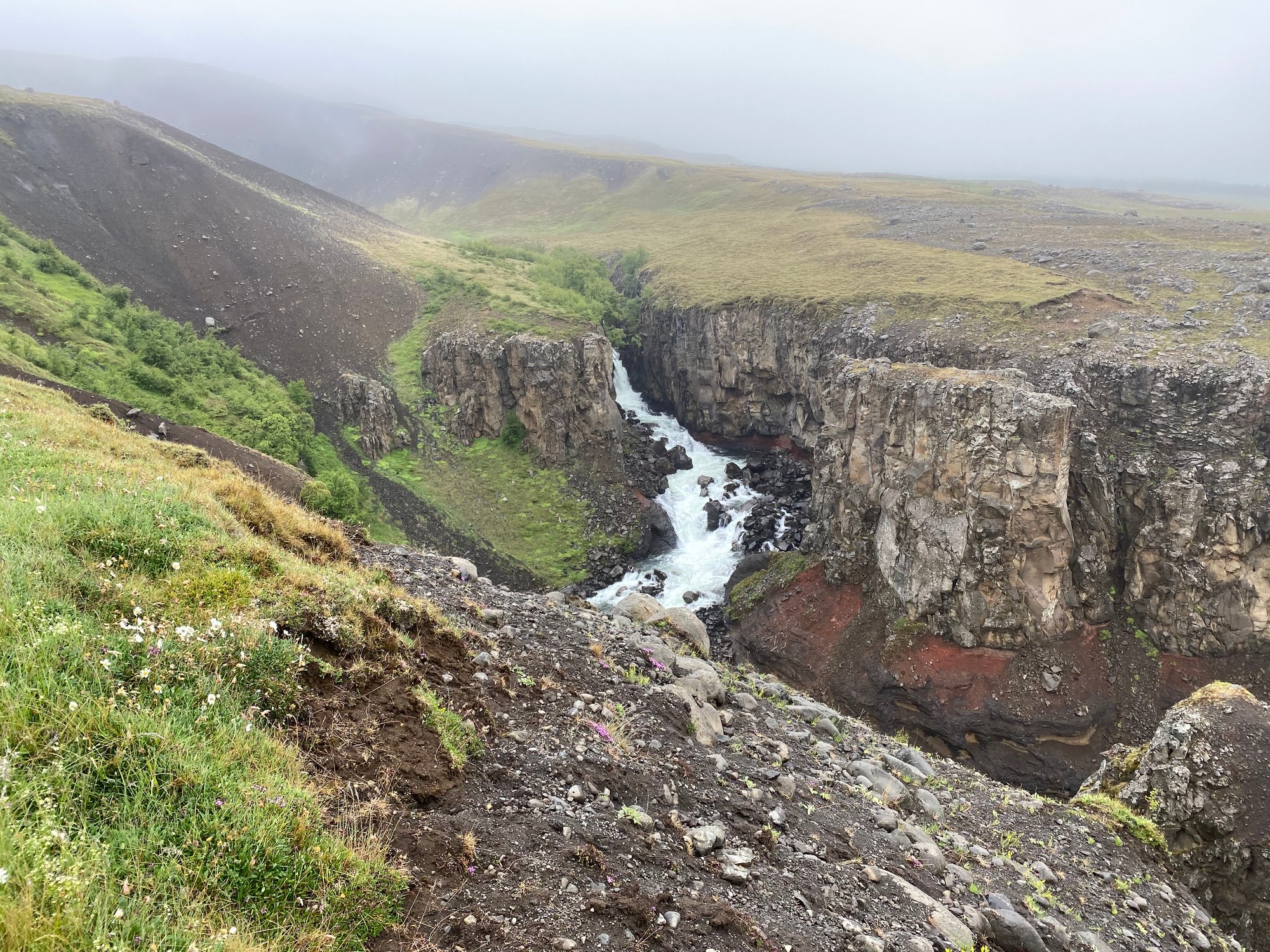 De volgende dag willen we de hike maken naar de Hengifoss waterval. Ondanks het slechte weer besluiten we toch die kant op te rijden en te beginnen aan de hike van 2,5 kilometer, waarbij we ook 300 meter in hoogte moeten stijgen. Het pad is direct behoorlijk steil en het zicht is nog steeds heel slecht door de mist. Hoe hoger we komen, hoe minder we zien. We beginnen ons af te vragen of het wel zin heeft om door te lopen naar de Hengifoss waterval...