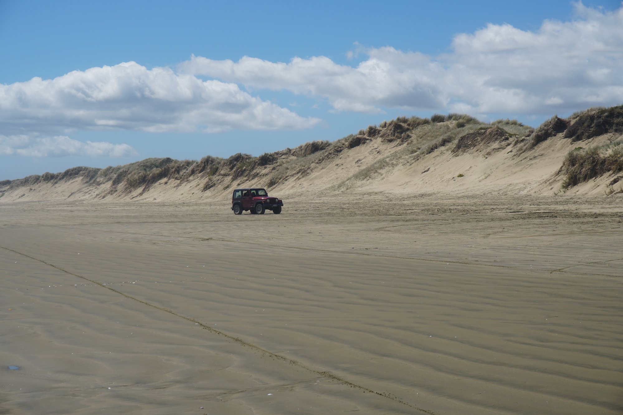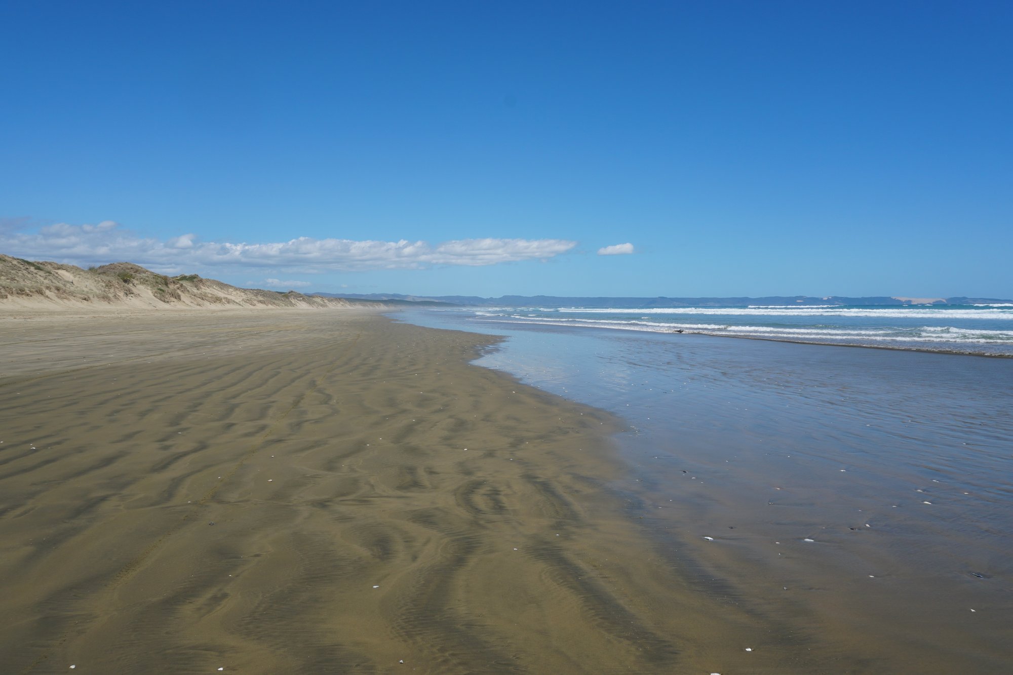 Maar, de stranden in Nieuw-Zeeland kunnen nog véél langer, zo blijkt. Bij 90 Mile Beach zie je zover als je kunt kijken alleen maar strand. Het bijzondere van 90 Mile Beach is dat het officieel ook een weg is en je er dus met de auto overheen mag rijden. Nu blijkt dat niet helemaal zonder gevaren, want er zijn maar enkele plekken waar je het strand op en af kunt. Als je op de verkeerde tijd vertrekt en het wordt vloed, dan kun je goed in de problemen komen! Sowieso is het rijden over 90 Mile Beach alleen aan te raden in een 4x4 voertuig. Zelf over 'deze weg' rijden lijkt me dus niet zo slim, maar als je toch wilt ervaren hoe het is om over dit oneindig lijkende strand te crossen, dan kun je met een tour mee. :-)