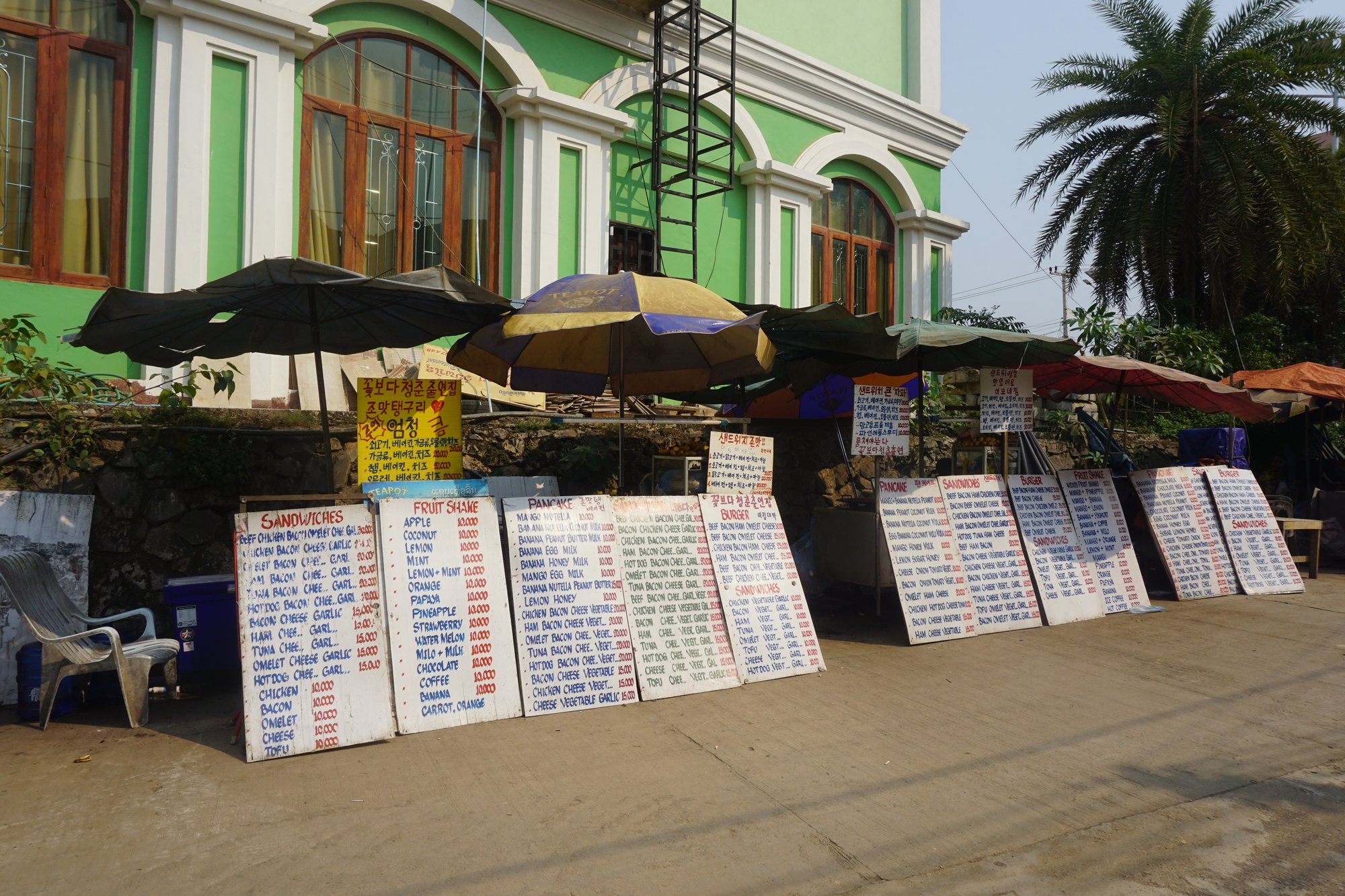 Het is echt wel heet in Laos de laatste dagen, dus we gaan al vroeg uit bed om de warmte een beetje voor te zijn. Tijd voor een snel en simpel ontbijtje. Tegenover het River Hill Restaurant staan een aantal dames al vanaf 7 uur 's ochtends met een kraampje aan de weg om sandwiches te verkopen. De sandwich ham/kaas is de beste die we tot nu toe op hebben in Laos en dat voor maar anderhalve euro!
