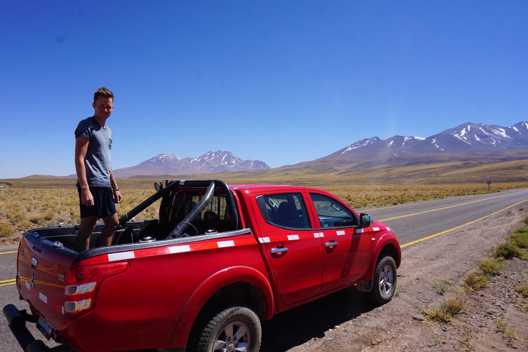 Enthousiast lopen we naar de autoverhuur om onze pick up op te gaan halen. We hebben ontzettend veel zin om zelf door dit schitterende landschap te gaan rijden. Vrijheid, blijheid! Samen met Chris, een Amerikaanse backpacker die we hebben ontmoet tijdens de Salar de Uyuni tour, gaan we een twee-daagse roadtrip maken door de Atacama woestijn.