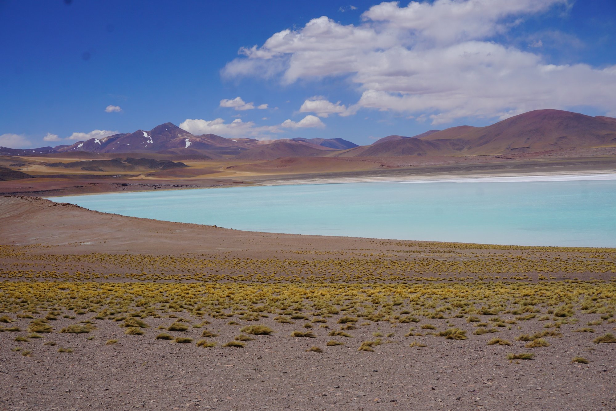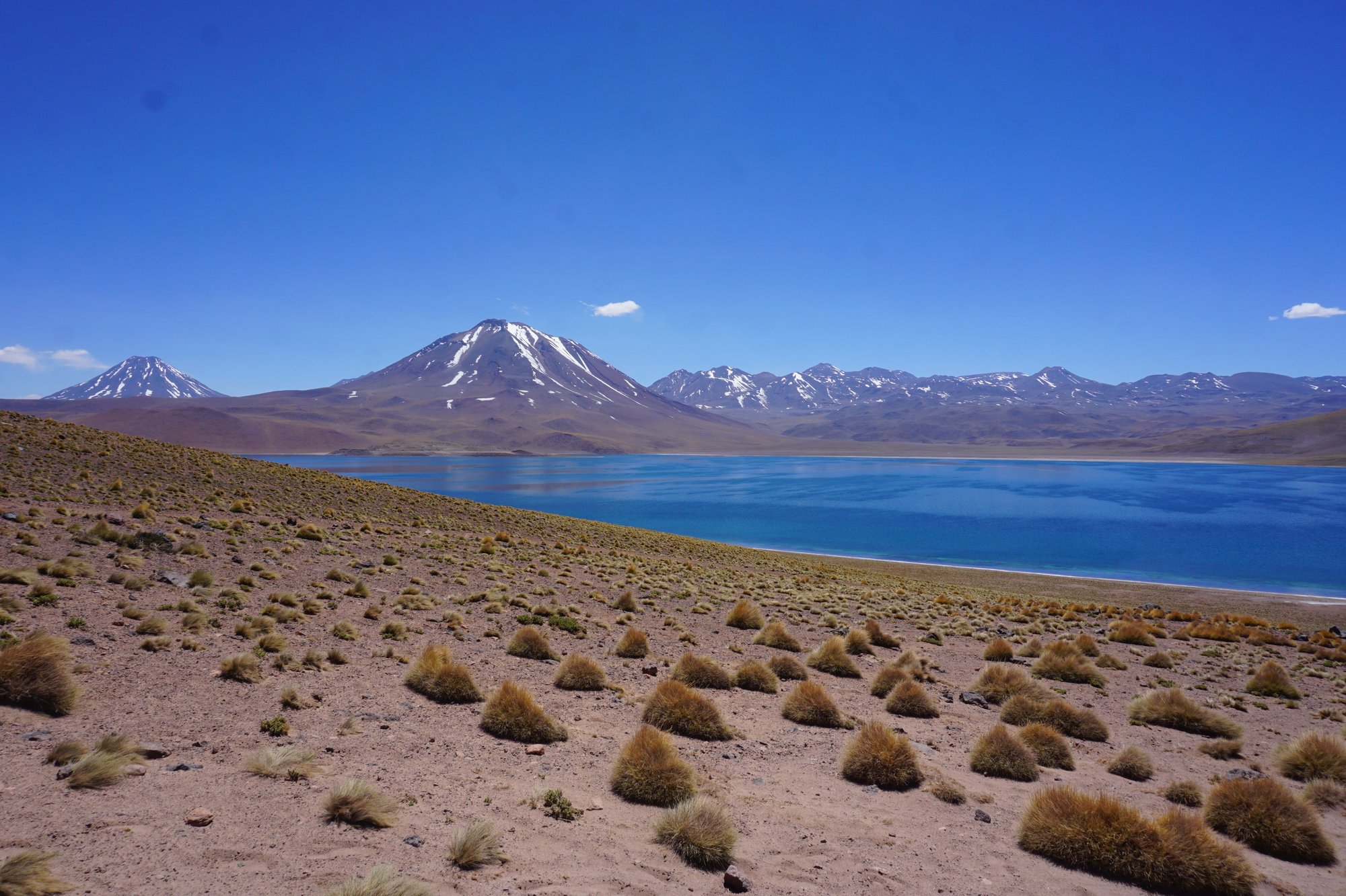 Na wat foto-stops onderweg komen we aan bij de eerste bezienswaardigheid van vandaag: Laguna Miscanti & Miñique. Deze twee felblauwe meren zijn door ondergrondse kanalen met elkaar verbonden. De bergen erachter weerspiegelen in het water. Het is hier onwijs mooi!