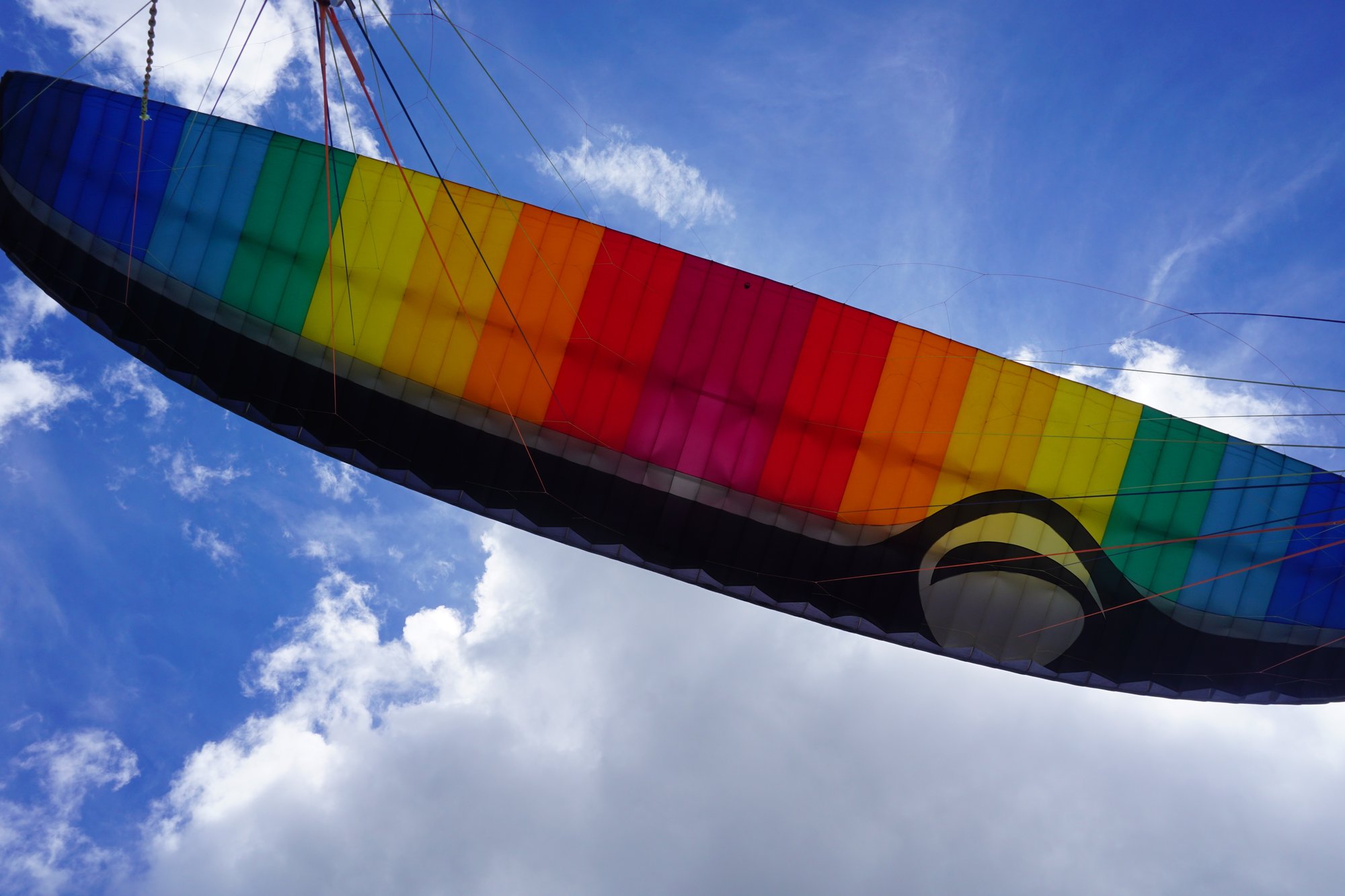 Tegelijkertijd word ik wel een beetje draaierig en misselijk. Vooraf hadden ze al wel verteld dat je wat misselijk kan worden door het schommelen en de draaiende beweging die je maakt met de parachute. Gelukkig vraagt mijn piloot steeds hoe het is en als hij merkt dat ik me even wat minder lekker voel, zorgt hij ervoor dat we wat rustiger vliegen. Heel fijn!