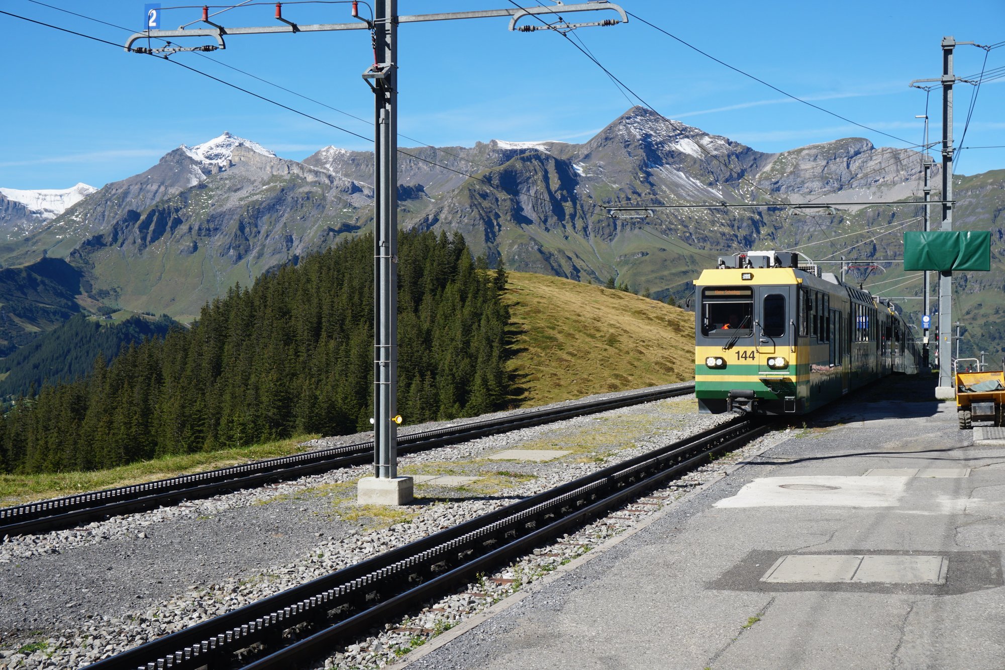Daarna gaan we echt de hoogte in. Het landschap wordt mooier en mooier. Hoe bijzonder is het dat je in dit soort gebieden en op deze hoogtes kunt komen met een trein! Bij het station Kleine Scheidegg moeten we overstappen en ook hier kijken we onze ogen uit. De groenbruine bergen met om je heen de besneeuwde toppen, het is prachtig. Vanaf Kleine Scheidegg zien we veel hikers en hier wandelen lijkt ons zeker geen verkeerde keuze. Helaas hebben we niet veel tijd om ook hier weer even rond te wandelen en foto's te maken, want het is al middag en we moeten nog aan de hike beginnen. Wij gaan door naar ons eindstation: Eigergletscher.