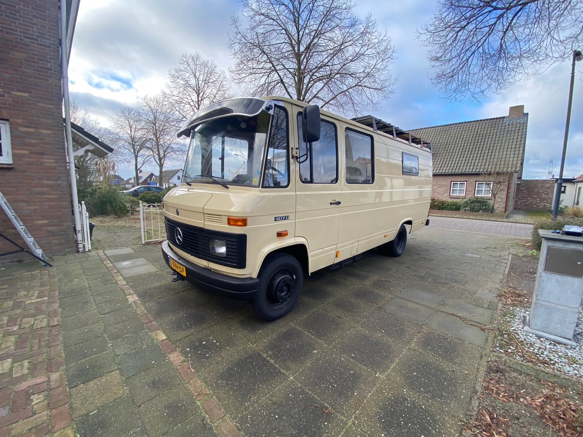 Gelukkig schoot Mark ons te hulp en hebben we met een serieuze takel het imperiaal op Bruno gekregen. Dat was nog best spannend, want het imperiaal met alles erop en eraan weegt wel 80 kg schatten we. Bevestigen, aansluiten en tada! We wekken vanaf nu onze eigen stroom op en kunnen straks dus nog vrijer kamperen met Bruno. Daar zijn we heel blij mee! En dat niet alleen, het imperiaal staat hem ook gewoon heel stoer. Vind je niet? ;-)