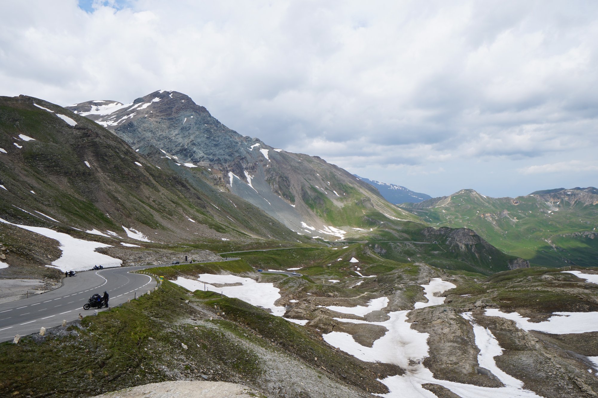 Alhoewel Bruno de Grossglockner Hochalpenstrasse ook wel getrotseerd had, was dat waarschijnlijk wel een stukje minder ontspannen geweest dan met een motor. Bruno heeft op zich geen moeite met klimmen - het gaat alleen traag, maar hij kan het tientallen kilometers volhouden - maar afdalen is soms wel een dingetje. Zeker als het steil is, lang duurt en er veel bochten zijn waarvoor je moet afremmen. Bruno heeft namelijk nog van die ouderwetse remmen die niet enorm krachtig zijn en tegelijkertijd een flink gewicht. Daardoor rolt hij nogal snel van een berg af als je niet ingrijpt. ;-)