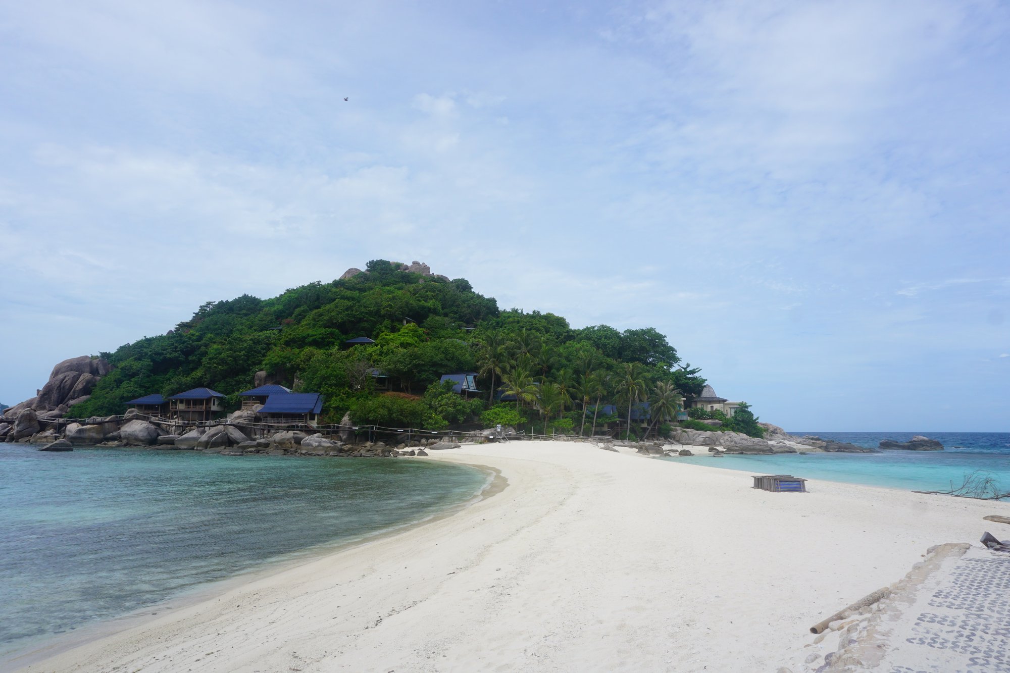 Oke, de mensen die schrijven dat Koh Nang Yuan een pareltje is, hebben zeker niet gelogen. Het strand is wit, het zeewater kristalhelder en de eilanden bestaan uit enorme rotsblokken en jungle. Het is schitterend! Alleen dat weten veel meer mensen. Het eiland zul je dus zeker niet voor jezelf hebben, maar gelukkig is het in juni nog relatief rustig in Thailand en valt het vandaag best mee met de drukte.