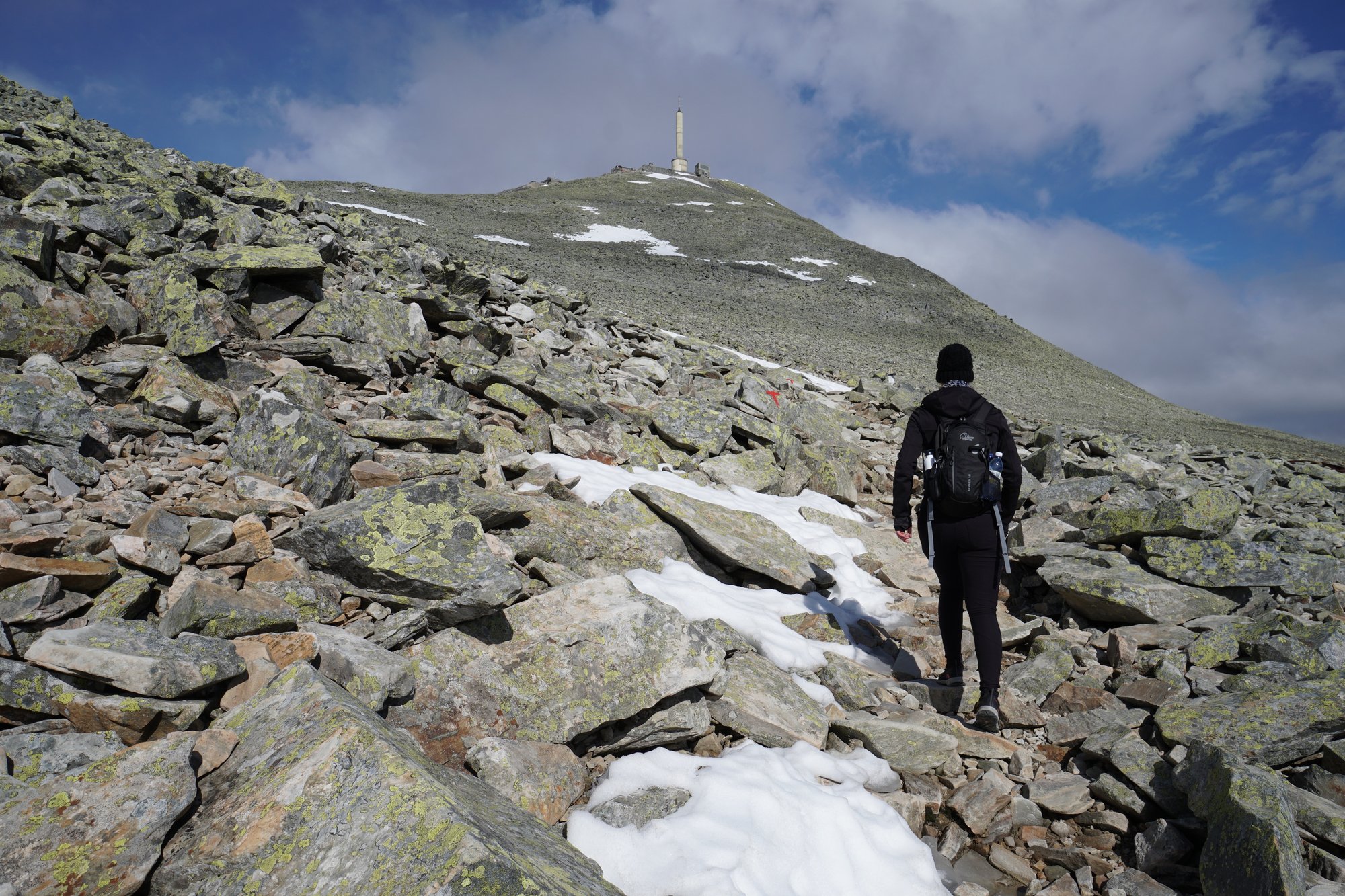 Ik heb het er taai mee dit keer. Geen idee waarom, maar de weg naar boven valt me best zwaar. Misschien dat je op een gegeven moment toch al merkt dat er wat minder zuurstof in de lucht zit? Of ik had gewoon een off day, kan ook. Gelukkig kun je naast conditie altijd terugvallen op doorzettingsvermogen. De top is al vrij snel in zicht, dus je weet waar je naartoe loopt. Dat motiveert!