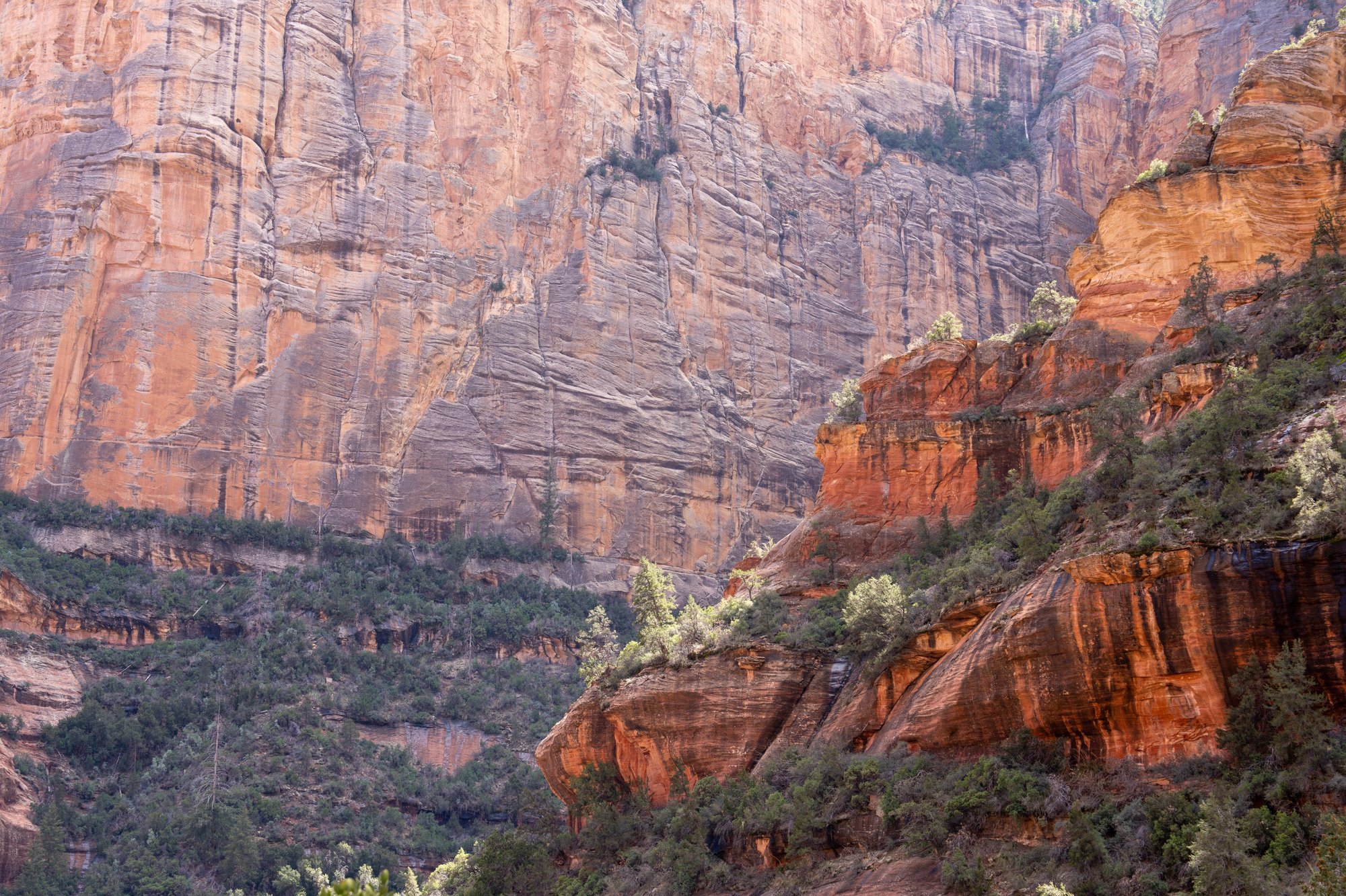 Waarschijnlijk komt de zon minder goed over de hoge rotswanden heen en is het daardoor vochtiger en groeien er andere planten en bomen. Bij de trailhead zagen we een poster waarop staat dat er beren leven in de Boynton Canyon en we hebben het idee dat we nu in hun leefgebied zijn. Dit voelt als een typische plek om een beer tegen het lijf te lopen. Het is een stuk rustiger dan op de trail tot de Subway Cave. Waarschijnlijk kiezen veel mensen ervoor om alleen naar de grot en terug te lopen en niet verder de Boynton Canyon in te gaan.
