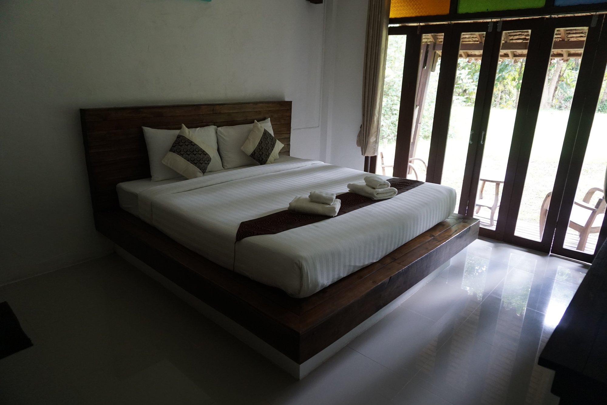 Bij Huen Muang Pai treffen we weer een heel leuk bungalowpark. In een groene omgeving staan diverse bungalows waar je bij binnenkomst verrast wordt door de frisse geur. De achterkant van de bungalow bestaat vooral uit glas en op de kleine veranda kun je heerlijk tot rust komen.