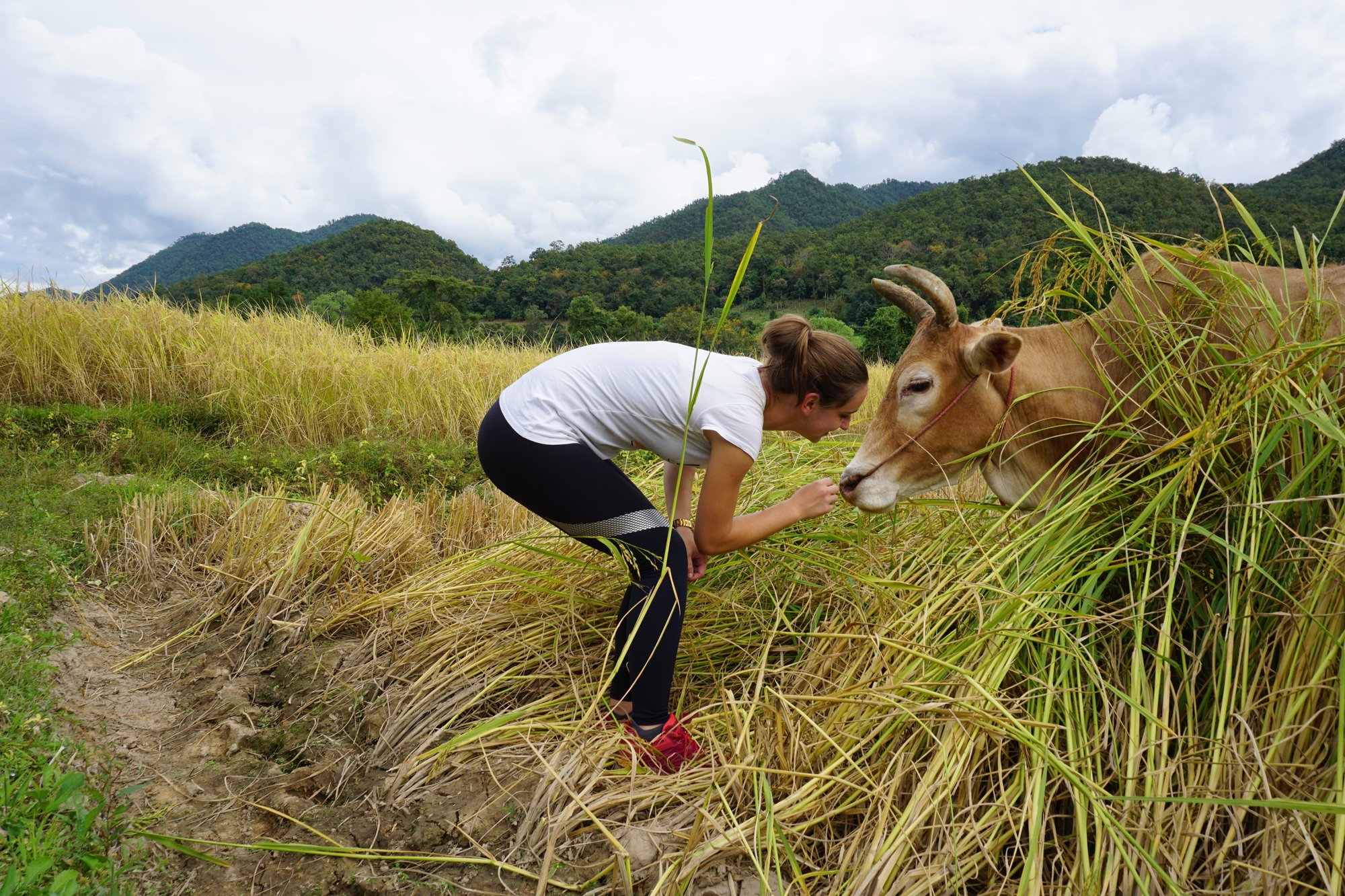 Wauw! De locatie van onze eerste bungalow is echt perfect. Via een houten loopplank kom je bij je huisje op palen midden in de rijstvelden. Je wordt omringd door bergen en het gezellige huisdier (de koe) houdt je gezelschap. Dit is écht genieten van de natuur. De bungalow is simpel ingericht, maar alles wat je nodig hebt is aanwezig. Het bijzondere aan de bungalow is de buitendouche. Douchen onder de sterrenhemel klinkt romantisch, maar de realiteit is ook dat je niet veilig bent voor de muggen. ;-)