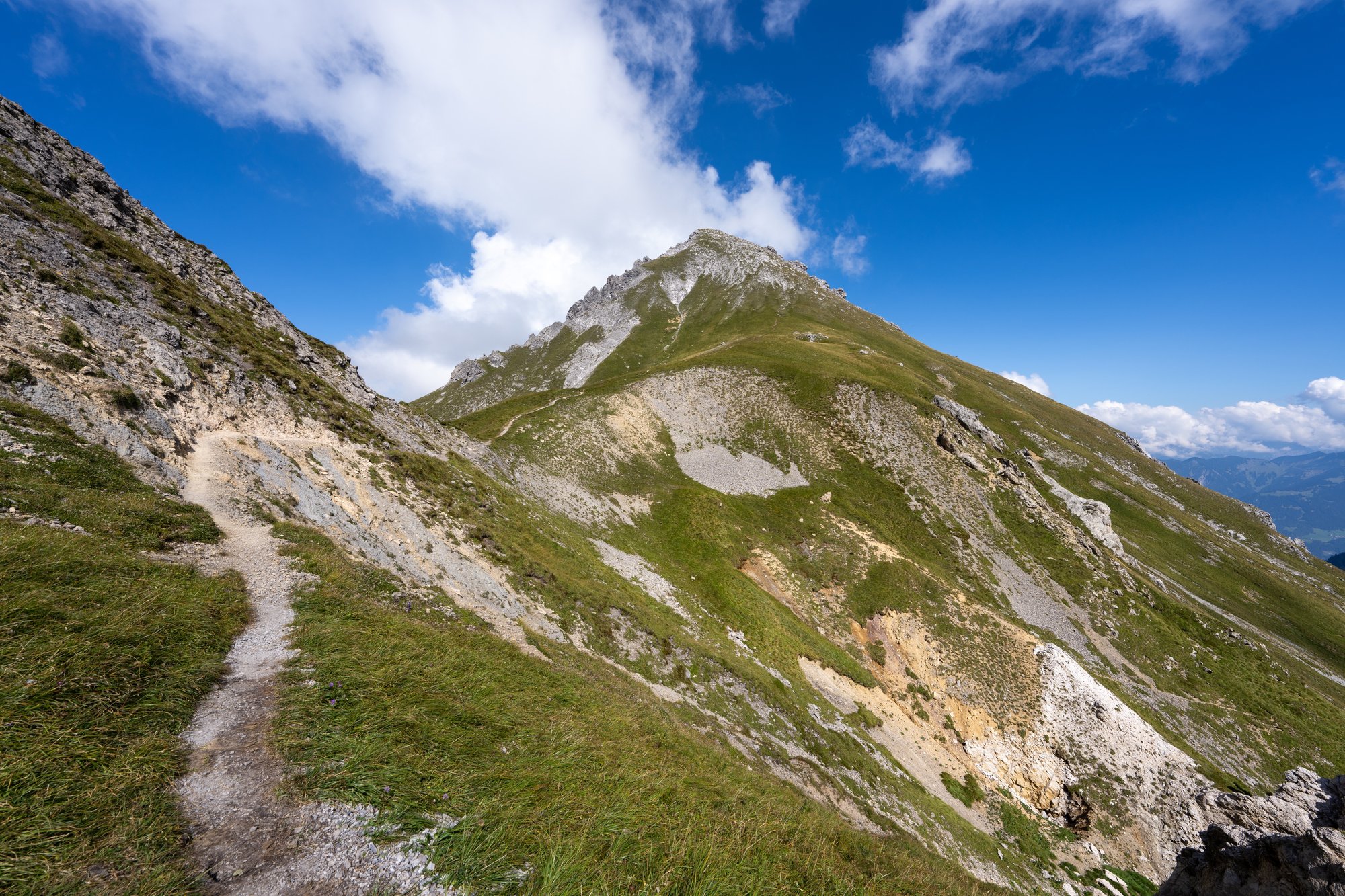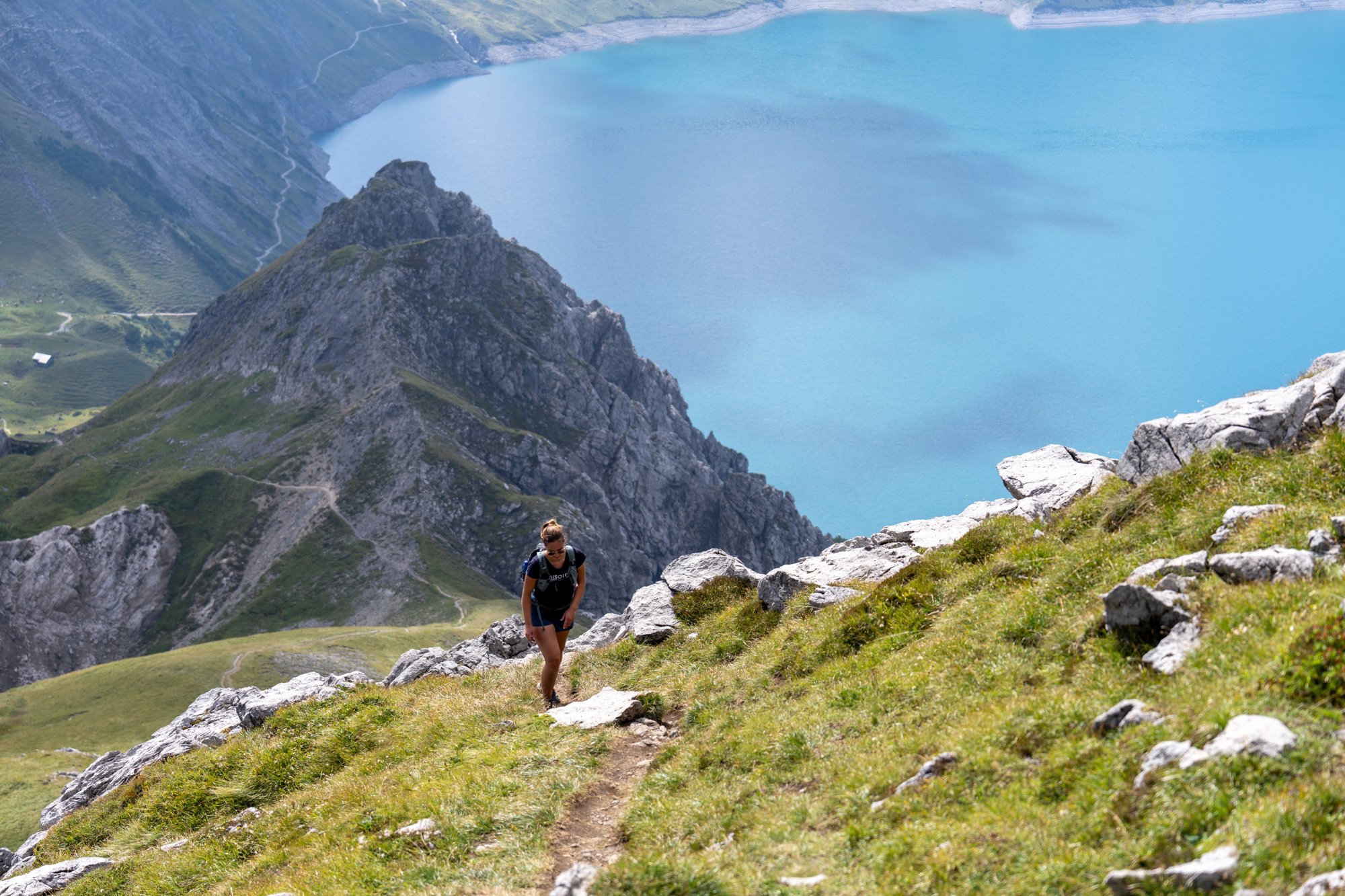 Ook bij de hike over de Gafalljoch Ridge zet je voet op Zwitserse bodem. Deze hike is met een afstand van 8,6 kilometer en slechts 364 hoogtemeters een stuk vriendelijker voor je kuiten.