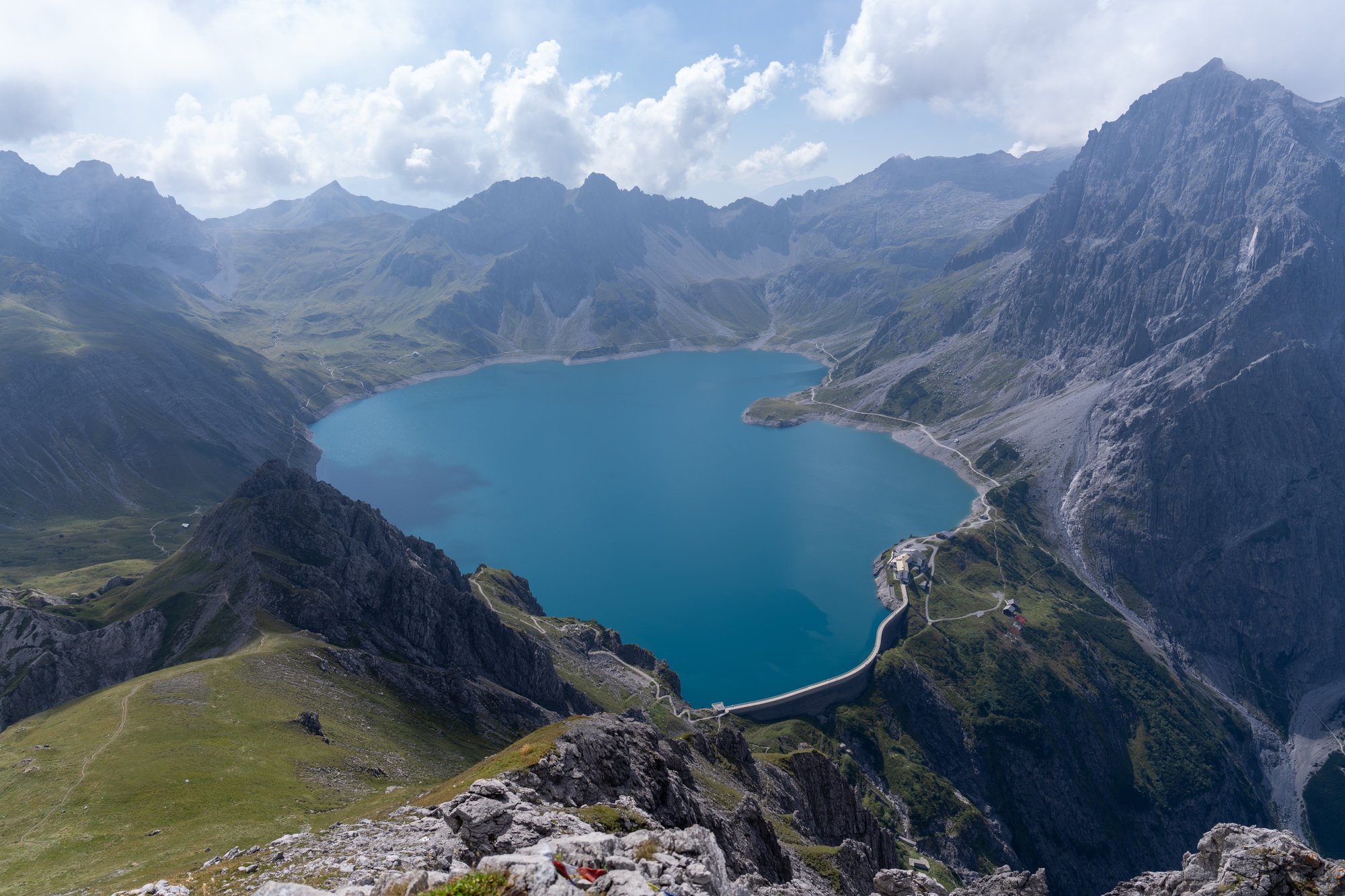 Het uitzicht op de Lünersee vanaf Schafgafall