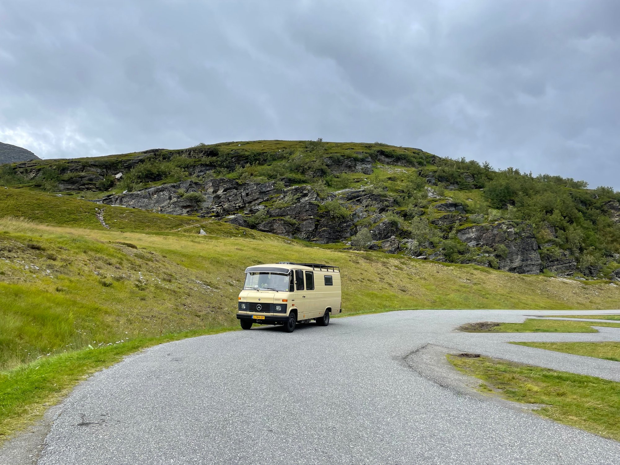 Een gevoel van trots overvalt ons allebei. Die oude bus heeft ons zonder problemen gewoon van Breda helemaal naar het noordelijkste punt van Europa gebracht. Met zijn 70 pk, ruim 3 ton aan gewicht en motor uit 1985 heeft hij ons over bergpassen, door fjorden, over hobbelige bospaadjes en langs prachtige kustroutes geleid. Onverstoorbaar startte hij iedere ochtend, beklom hij elke berg en liet hij ons nooit in de steek. Hij heeft er zo’n 10.000 kilometer op zitten sinds de start van ons Scandinavië avontuur. Wat een topper is Bruno!