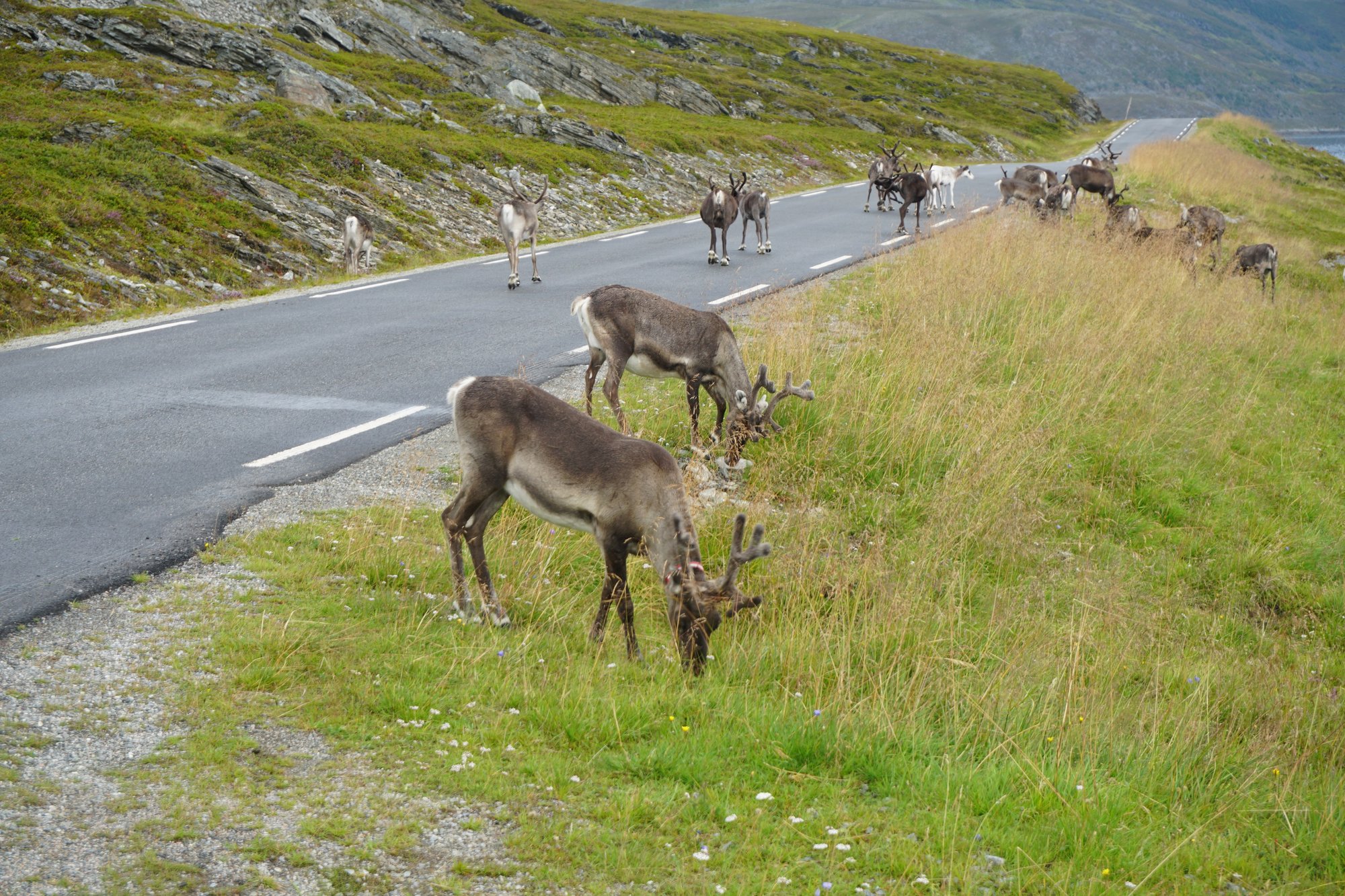 Nadat we ons hebben ondergedompeld in al het lekkers van Tromsø (verder vonden wij de stad niet zo heel boeiend), beginnen we aan de 3-daagse tocht naar de Noordkaap. Het is ruim 600 kilometer vanaf Tromsø en wij rijden niet zo snel, dus knippen we de tocht in 3 etappes. Tijd zat. ;-)
