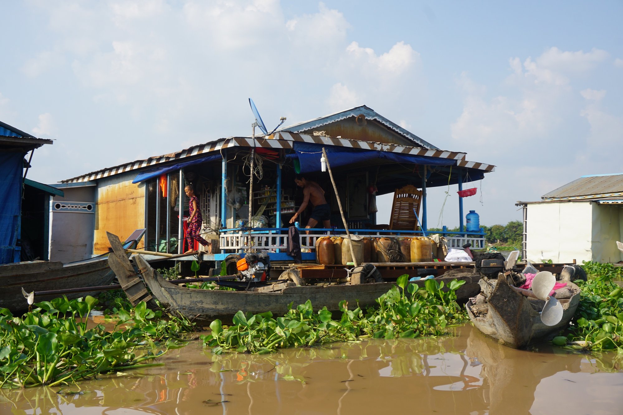 Op de rivier bij Kampong Chhnang vind je een groot, drijvend dorp. De kleurrijke huisjes en vrolijke kinderen toveren zo een glimlach op je gezicht. Maar wanneer je met een bootje door het drijvende dorp vaart, zie je ook hoe hard het leven op het water is. Bij Kampong Chhnang zijn de drijvende dorpen nog echt en puur, in tegenstelling tot de dorpen in de buurt van Siem Reap. Tijdens onze boottocht hebben we in ieder geval geen enkele toerist gezien!