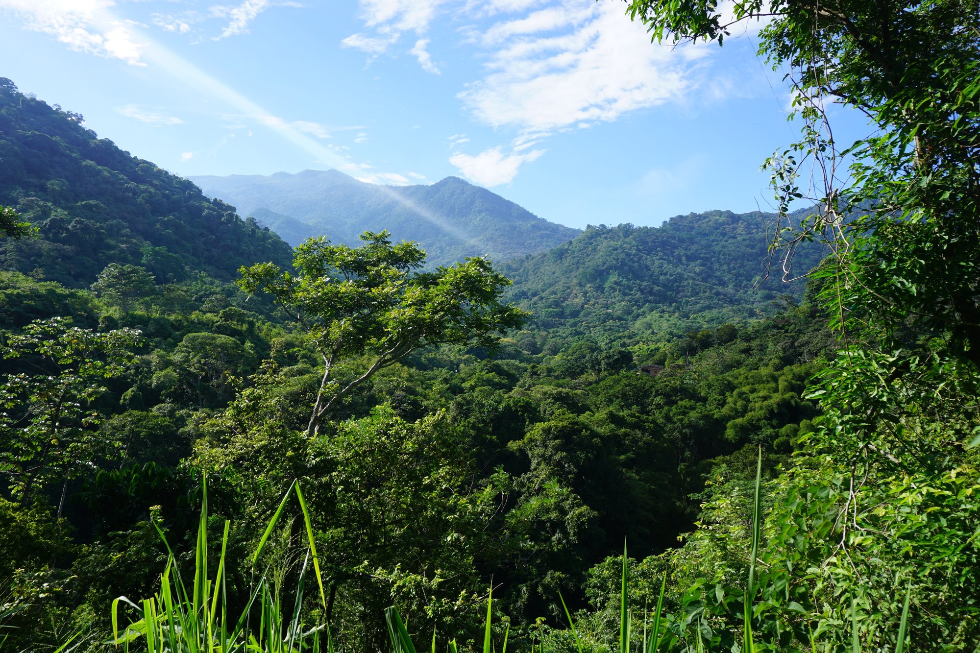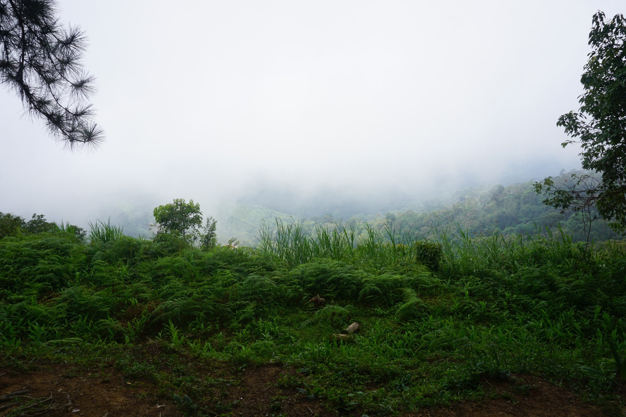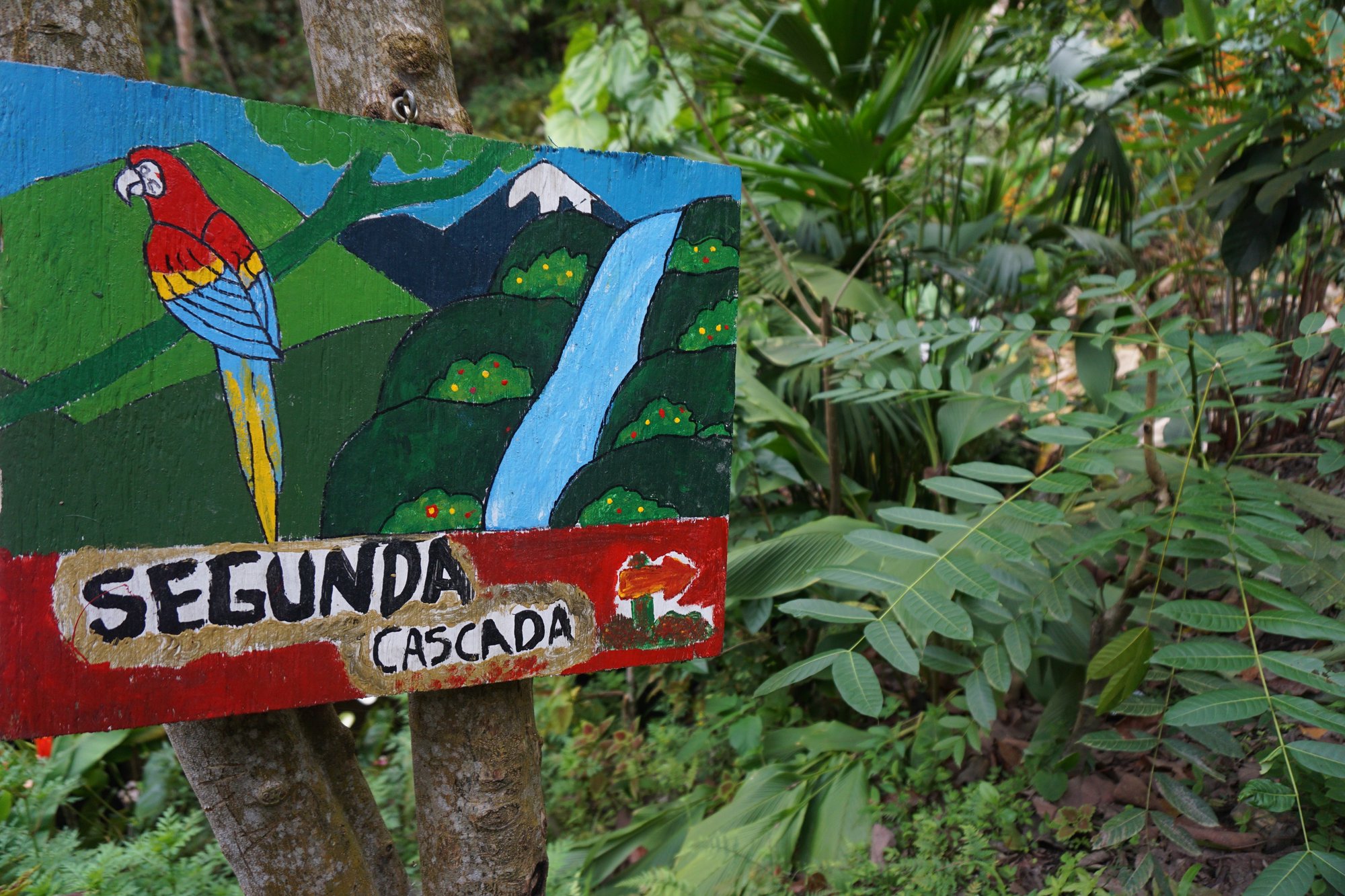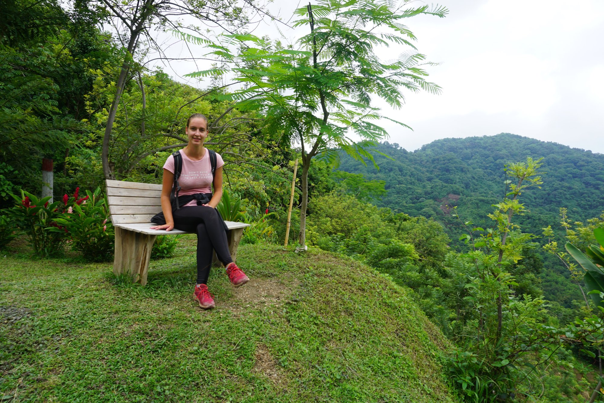 Het pad tussen Cascades de Marinka en Casa Elemento is echt zwaar. Het pad wordt zo smal dat er geen jeeps of motortaxi's meer kunnen komen en de begroeiing is vrij dicht. We ploeteren ons door de struiken omhoog. Echt steil omhoog. Ondanks dat het in afstand maar een kleine 4 kilometer is, wil het maar niet opschieten. Uiteindelijk halen we Casa Elemento en wacht daar een schitterend uitzicht op ons! Dat geeft weer energie en kracht.