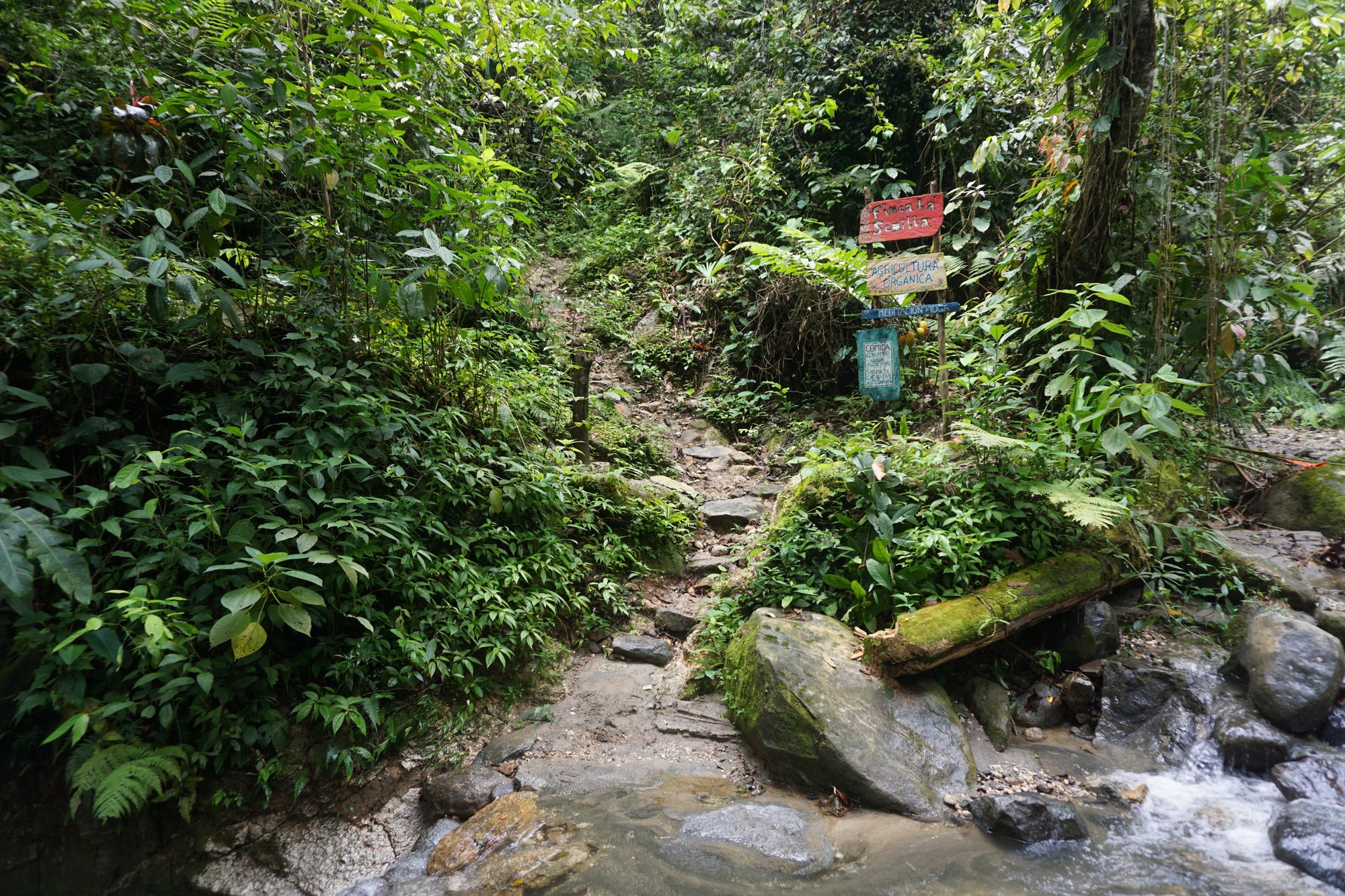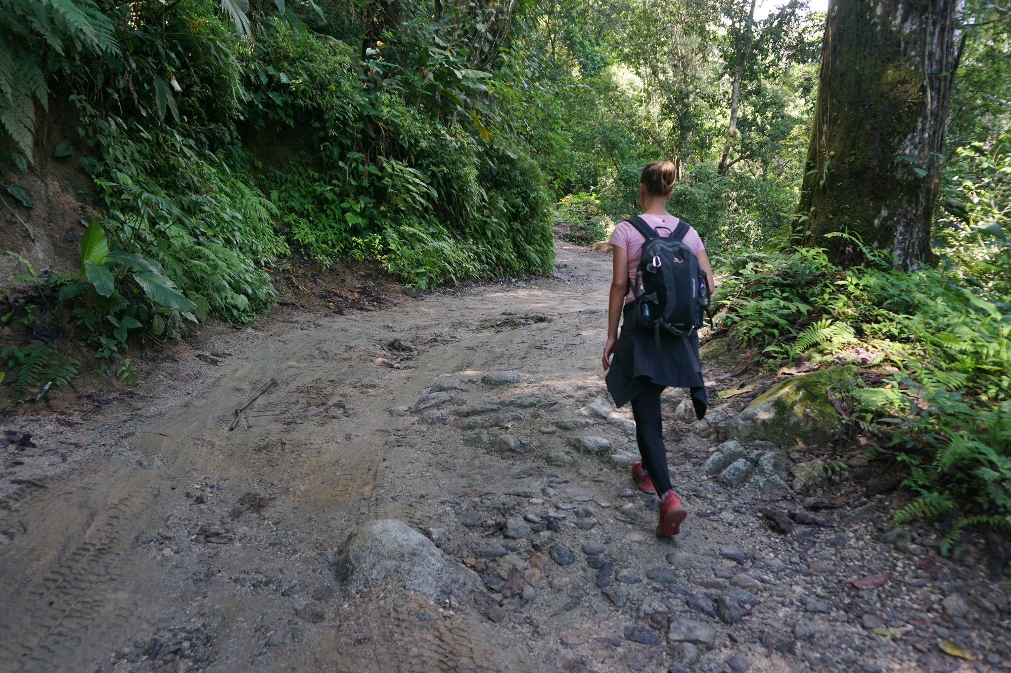 Vanaf Casa Elemento kunnen we de motortaxi terug naar Minca nemen, maar we besluiten onze ronde te voet af te maken. De tweede 10 kilometer is gelukkig vooral afdalen. Hoewel dat na verloop van tijd ook wel zeer gaat doen aan je benen, hebben we dit toch veel liever dan omhoog lopen. Als we ook maar 3 stappen proberen te stijgen, gaan onze spieren al protesteren!