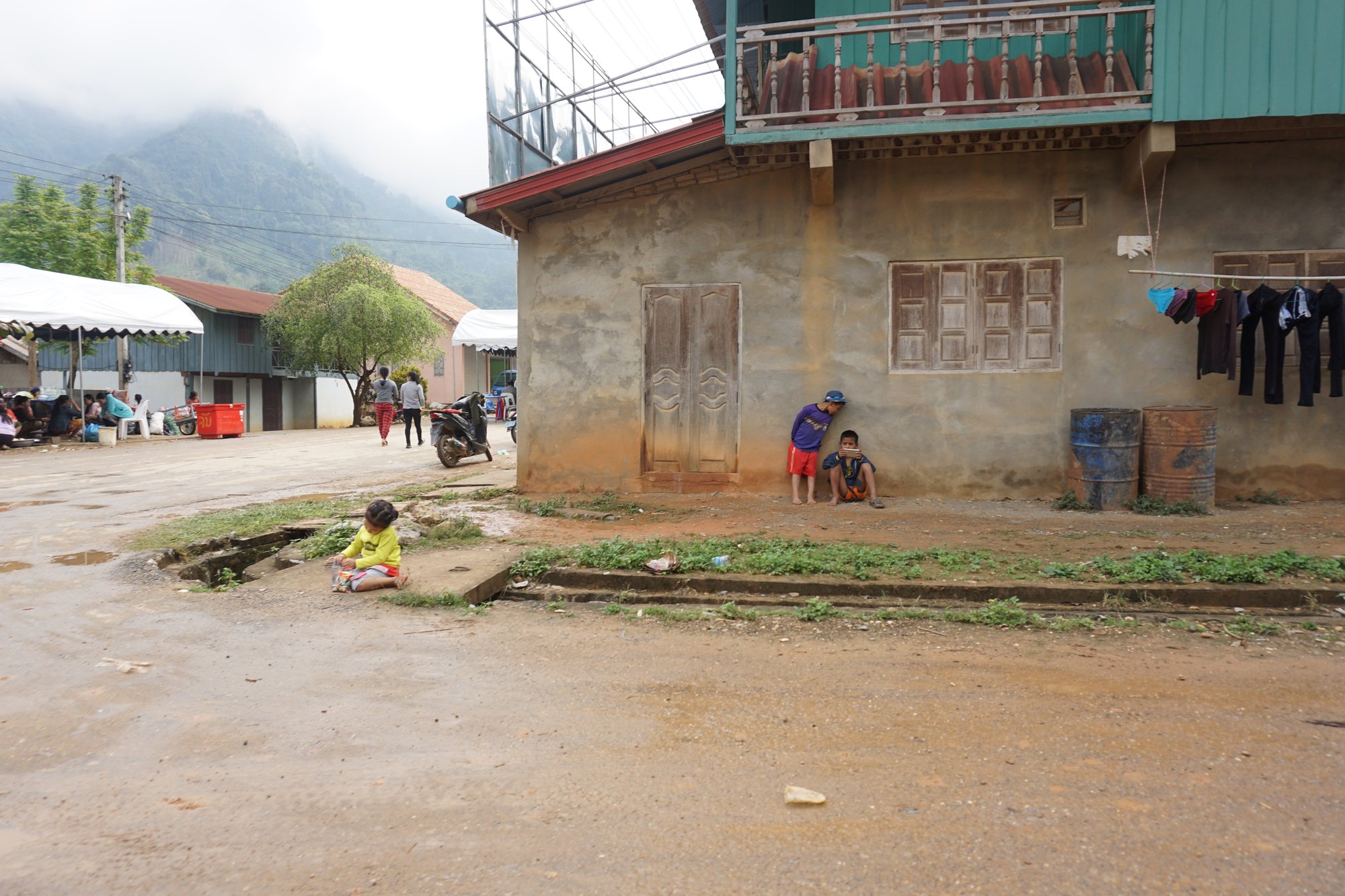 Nong Khiaw was onze laatste bestemming in Laos en nergens hebben we het fris gehad, behalve in Nong Khiaw. Het is er vaak mistig en de luchtvochtigheid is behoorlijk hoog. Doordat je in de bergen zit, koelt het 's avonds best wel af en lange kleding is dan geen overbodige luxe. Ohja, ook handig om te weten: natte kleding droogt vrijwel niet. Dus zorg voor voldoende droge kleren en eventueel extra schoenen in je backpack. ;-)