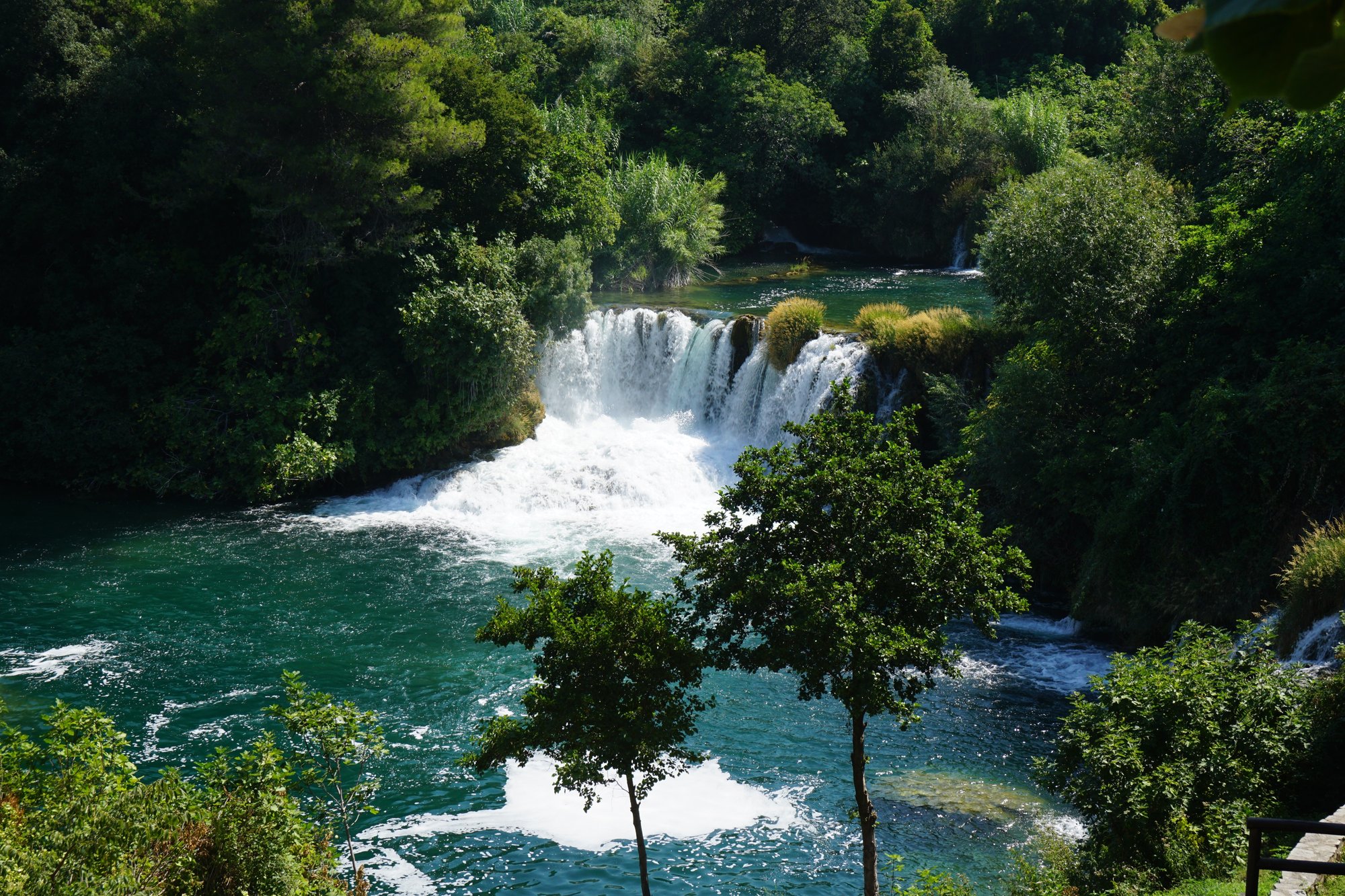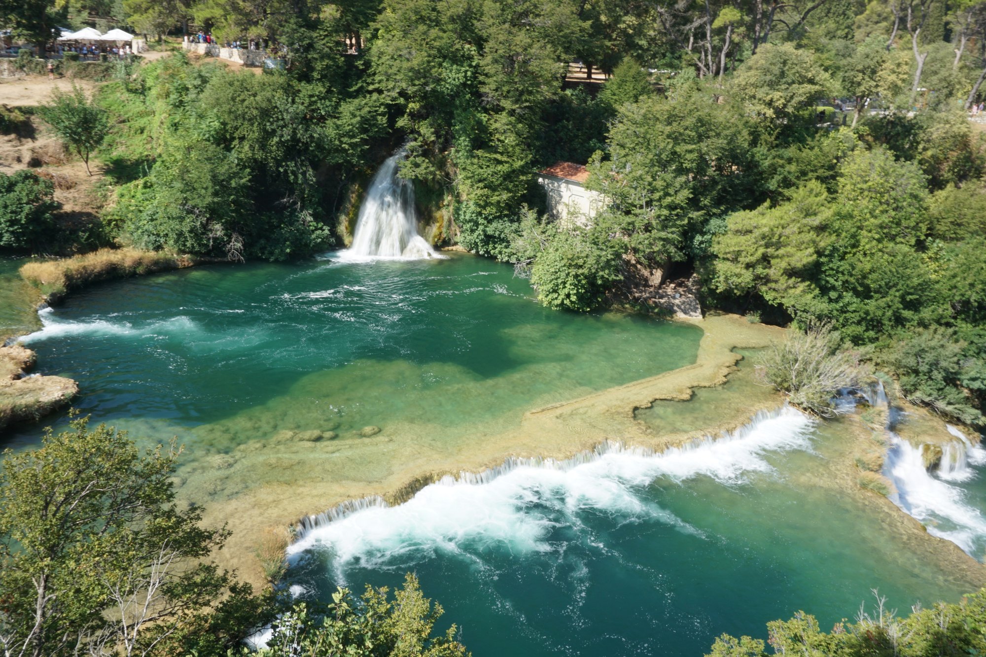 Op internet zien we altijd zoveel mooie foto's van Kroatie voorbij komen vol watervallen en groene natuur. Dat willen wij ook gaan zien en dus vertrekken we al vroeg naar de Krka Watervallen. De Krka rivier is de langste rivier in Kroatië en door het karstgesteente zijn er meerdere watervallen ontstaan. Rondom deze watervallen is het Krka Nationaal Park gevormd. Via houten vlonders over het water kun je deze magische plek verkennen. Van klein tot groot, watervallen zijn hier in overvloed. De bekendste waterval is de Skradinski Buk waarbij het water over 17 'trappen' naar beneden klettert. Een prachtig gezicht. Het enige jammere is dat je bijna geen foto kunt maken zonder hordes toeristen erop, maar dat is de tijd van het jaar. ;-)