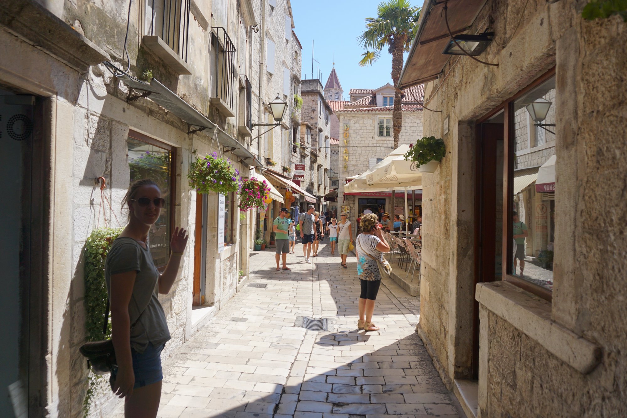 Na een korte vlucht vanuit Amsterdam landen we op de luchthaven van Split. Eerst naar Trogir, een historisch dorpje dat op een paar kilometer afstand ligt. De autovrije, kronkelende steegjes en oude gebouwen maken Trogir een ware trekpleister. Dat betekent in het hoogseizoen wel een hoop drukte! Overal zijn cafés, restaurants en winkels. De belangrijkste bezienswaardigheden zijn de Kathedraal van Sv. Lovro en het Fort van Kamerlengo. Het schattige dorpje ligt op een schiereiland, waardoor je aan de randen uitkijkt op de felblauwe zee. Een goed begin van onze dag!