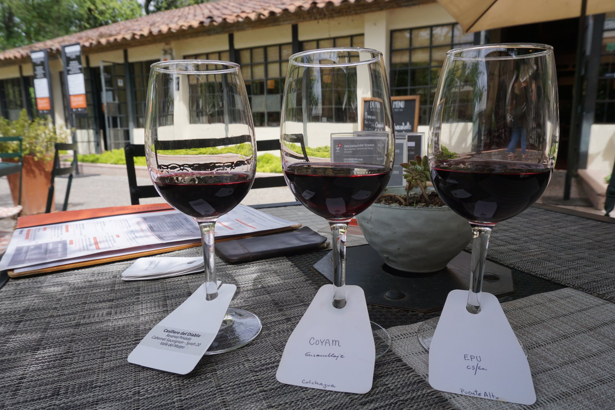 Omdat we nog wat tijd over hadden voor onze busrit naar Mendoza in Argentinië, bezochten we een paar dagen later vanuit Santiago ook nog het wijnhuis Concha y Toro. Dit wijnhuis is vooral bekend van het wijnmerk Casillero del Diablo, wat je in Nederlandse supermarkten veel ziet. In een middagje op het terras bij dit wijnhuis proefden we maar liefst 10 verschillende wijnen. Wat wil je nog meer!