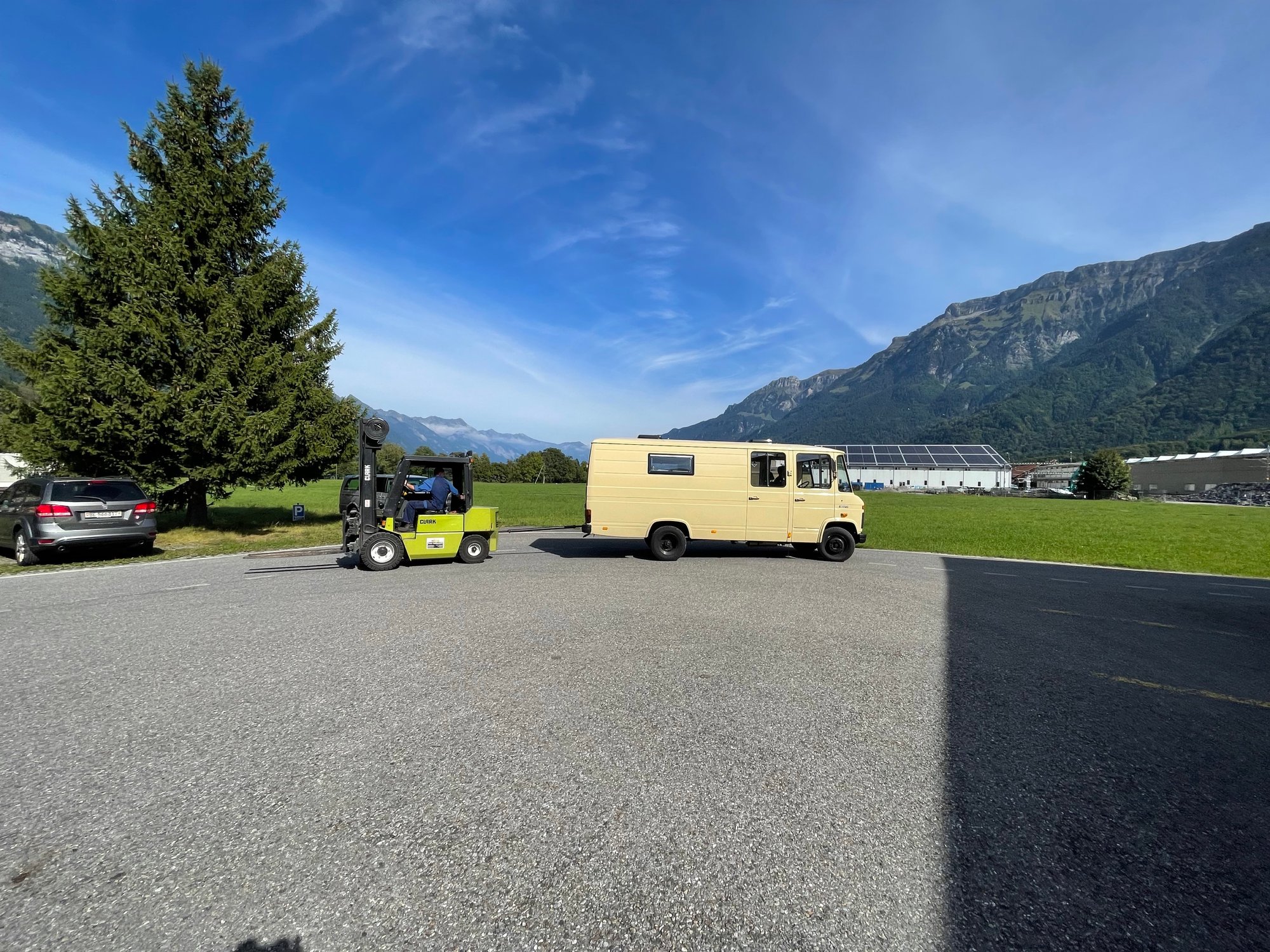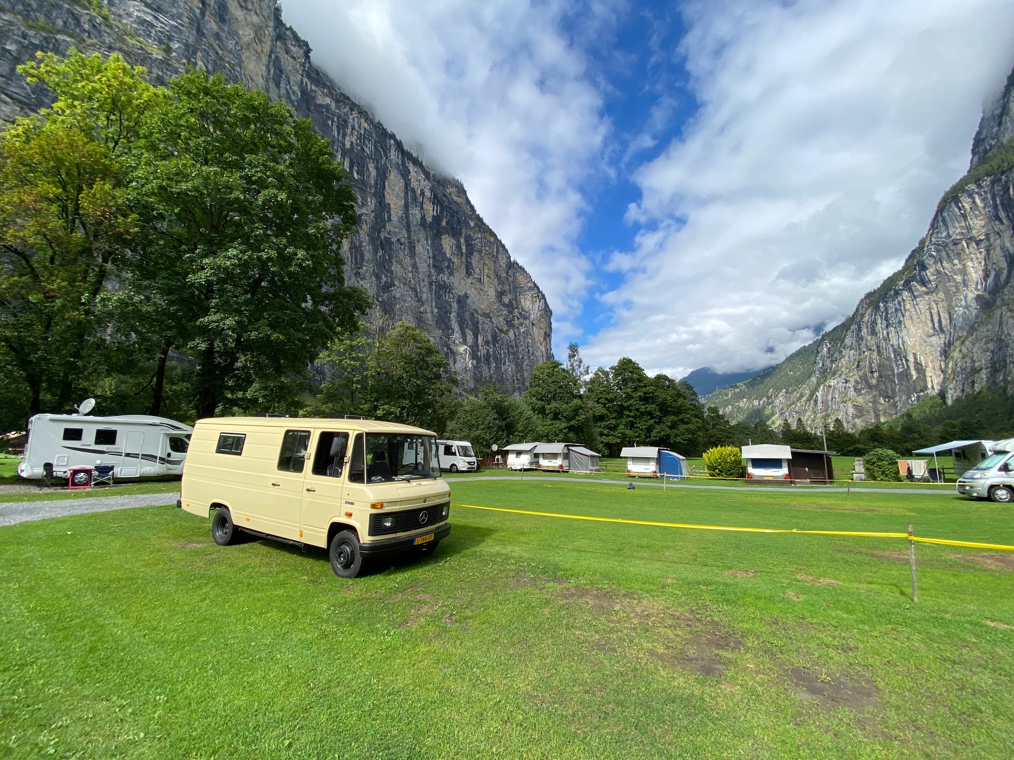 Eigenlijk begint dit verhaal al een dag eerder. Nadat we 2 nachten op een camping in het kleine stadje Ewil hebben gestaan om de vele regen uit te zitten, vinden we het tijd om verder te gaan. Op naar Lauterbrunnen! We zijn klaar om te vertrekken, maar onze camper Bruno denkt daar anders over. Er gebeurt niks als we de koppeling intrappen. Er zit totaal geen druk achter. Gek!