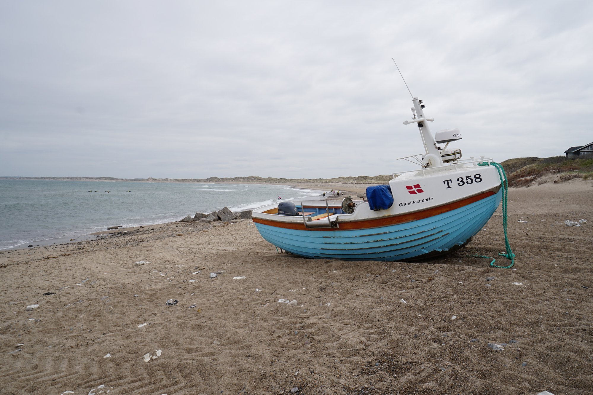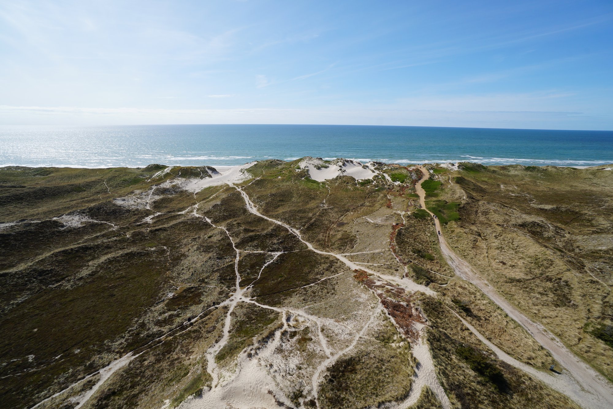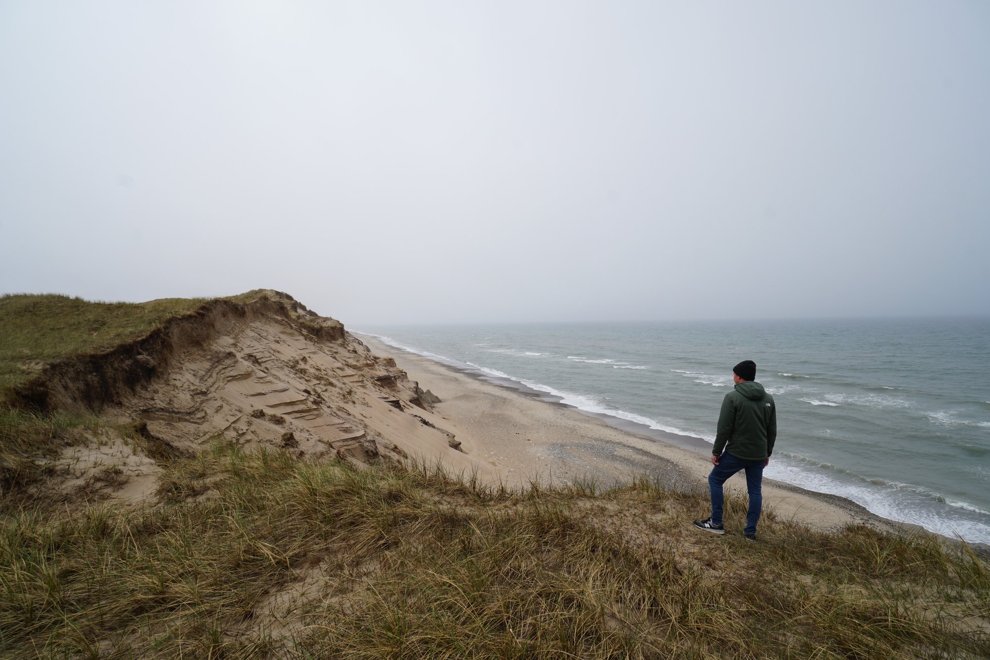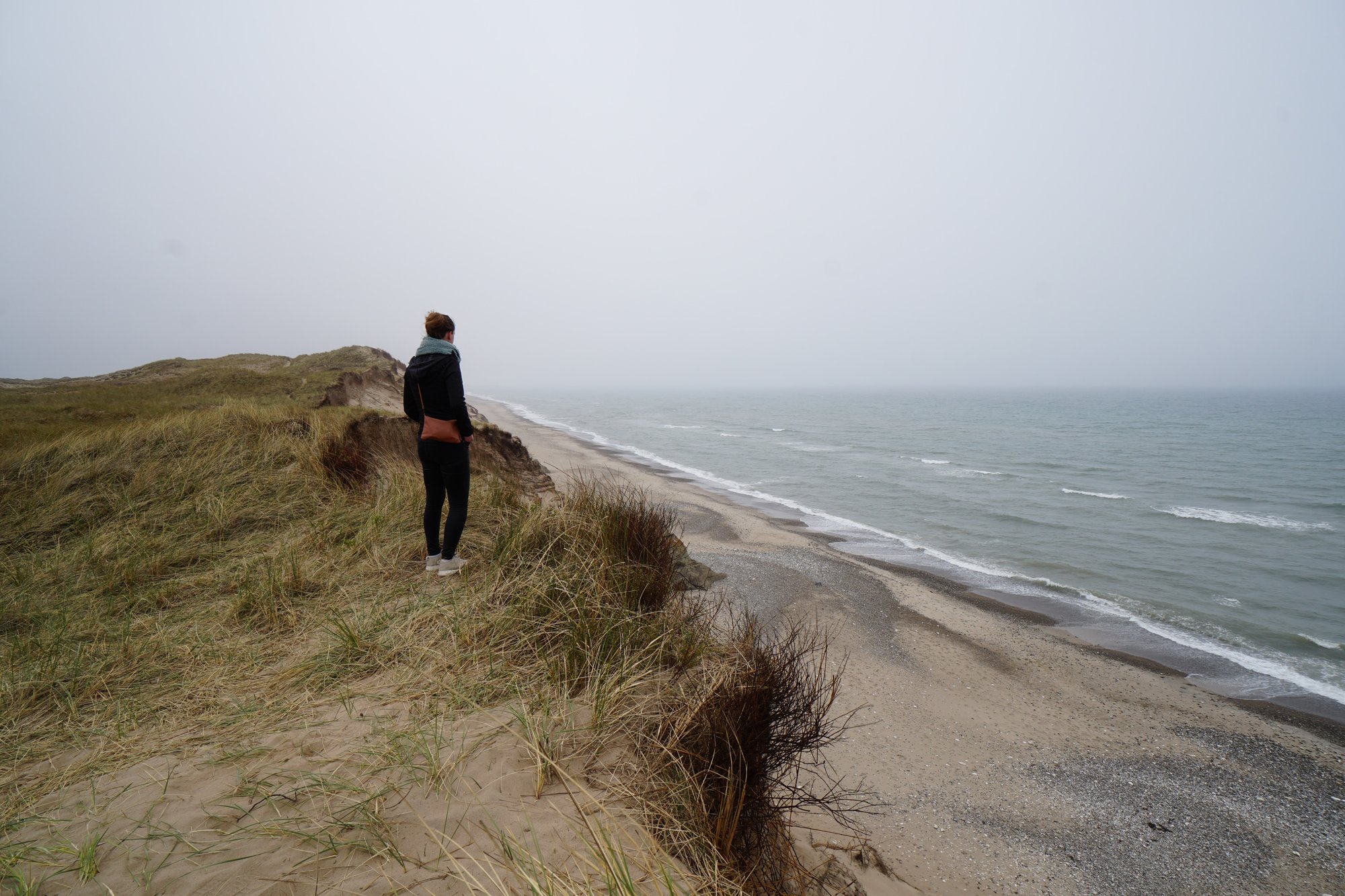 De volgende ochtend rijden we naar het Nationaal Park Thy en maken we een korte wandeling vanaf de Lodbjerg Fyr. In het verlaten duinlandschap kun je urenlang dwalen, maar door de heuveltjes en het losse zand is het nog best pittig. Wij houden het bij een korte wandeling richting de kust en weer terug. Het bizarre is dat als je tot aan de zee loopt, je ineens bij een behoorlijk diepe afgrond staat. Plotseling stopt de duin en ligt enkele tientallen meters onder je de zee. Dat was onverwachts!