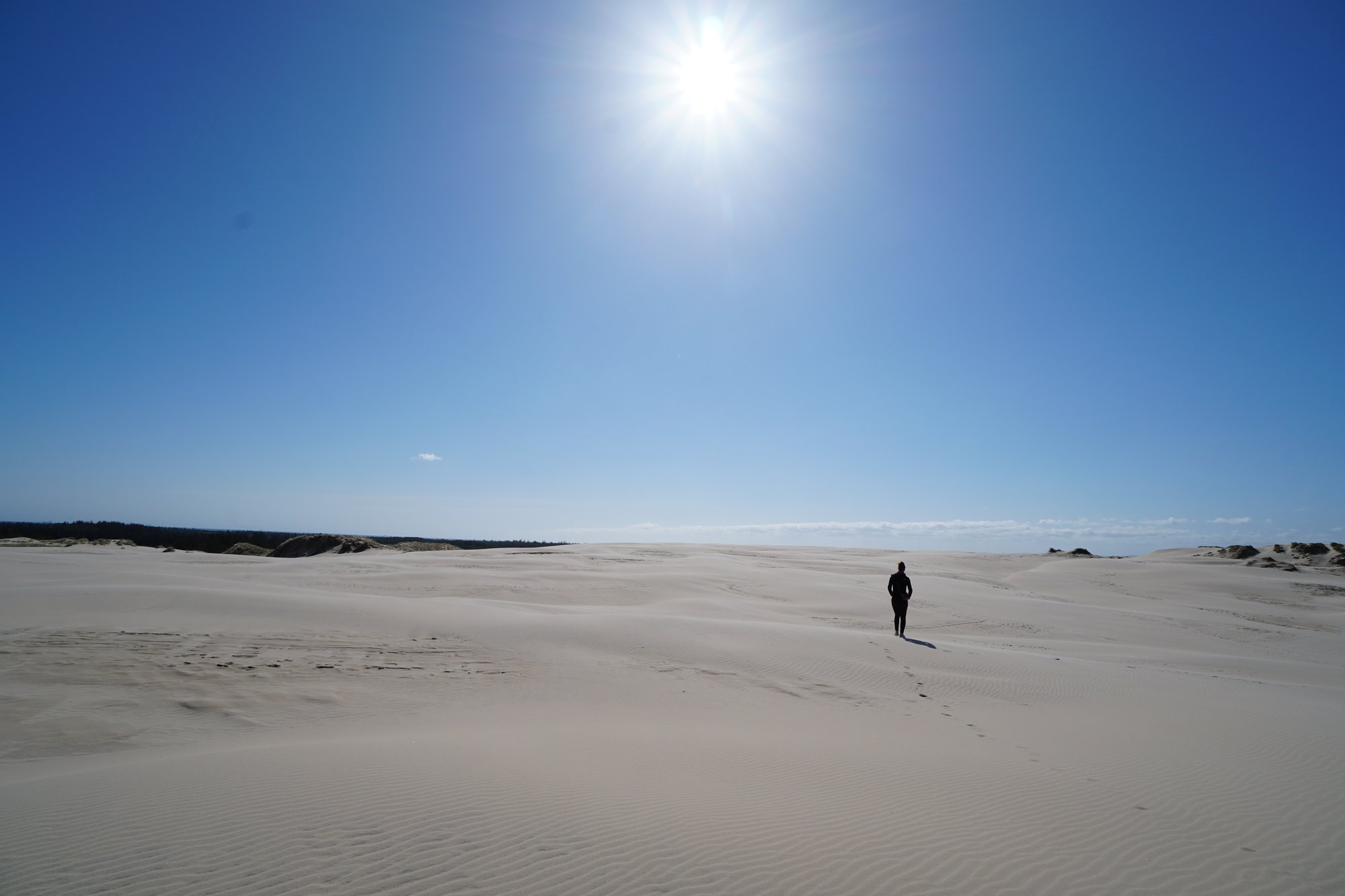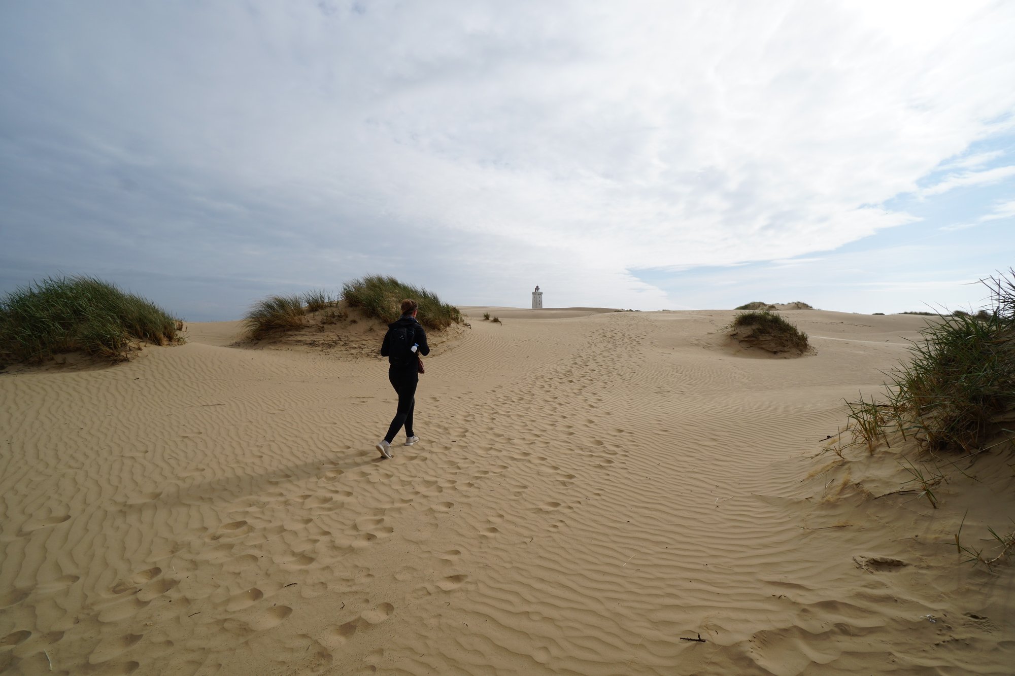 De volgende dag rijden we naar een ander bijzonder natuurfenomeen. Råbjerg Mile is een grote zandduin die ieder jaar zo’n 18 meter verplaatst. Bizar idee! Als we vanuit de parkeerplaats de duin op lopen, lijkt het even alsof we heel ergens anders zijn. Overal zand! Net alsof je in de woestijn staat, maar dan met iets frissere temperaturen. ;-)
