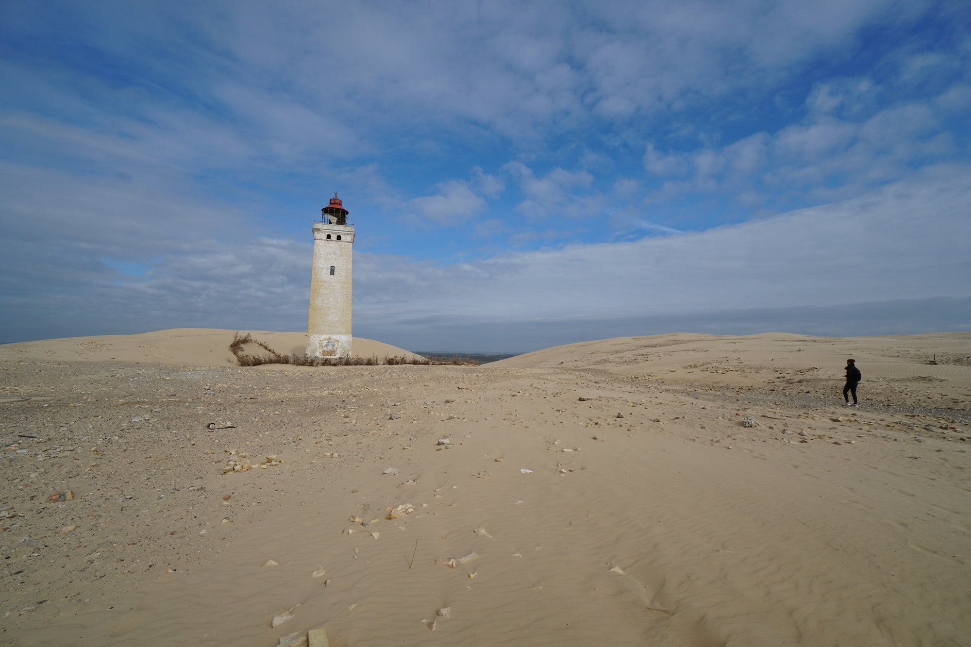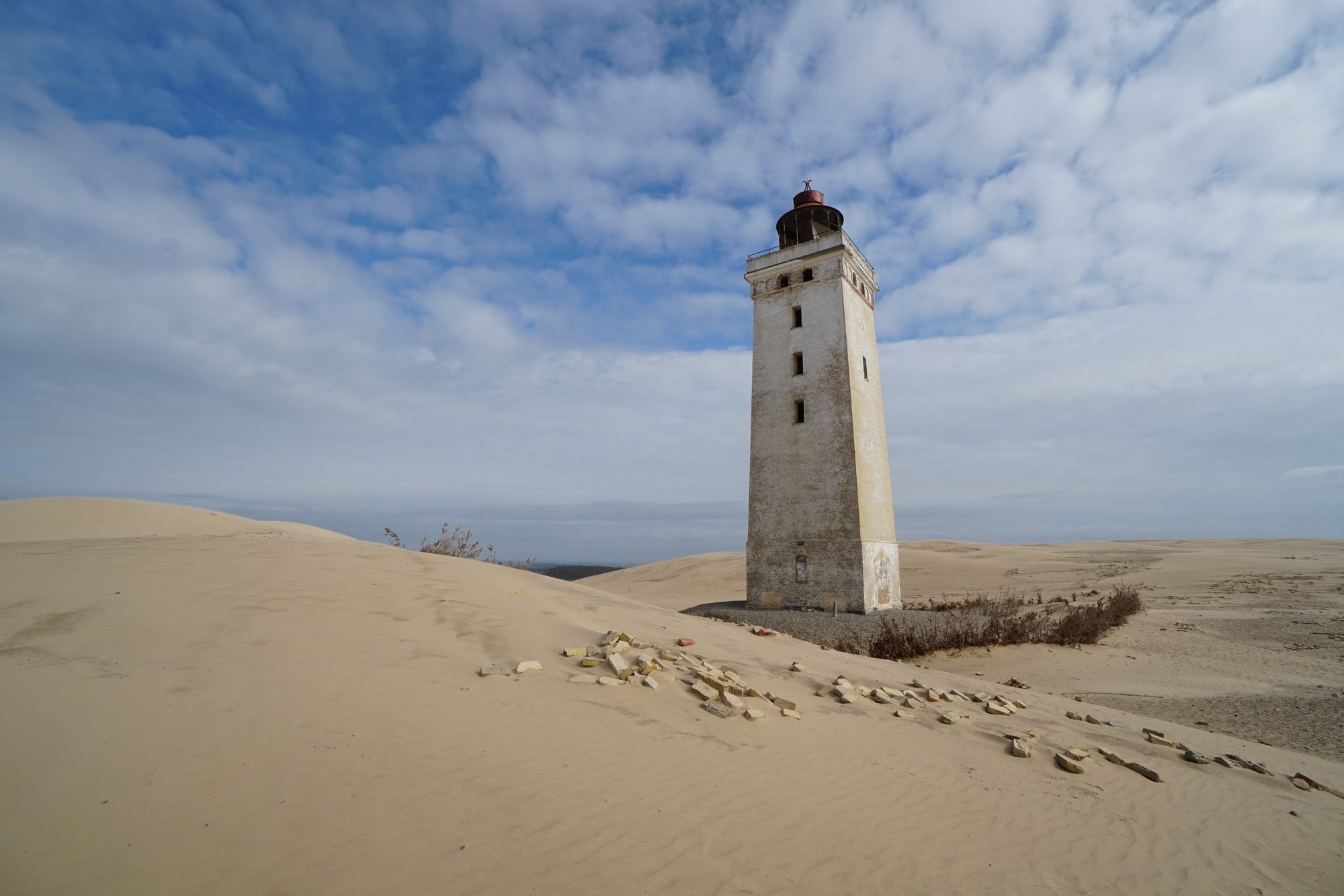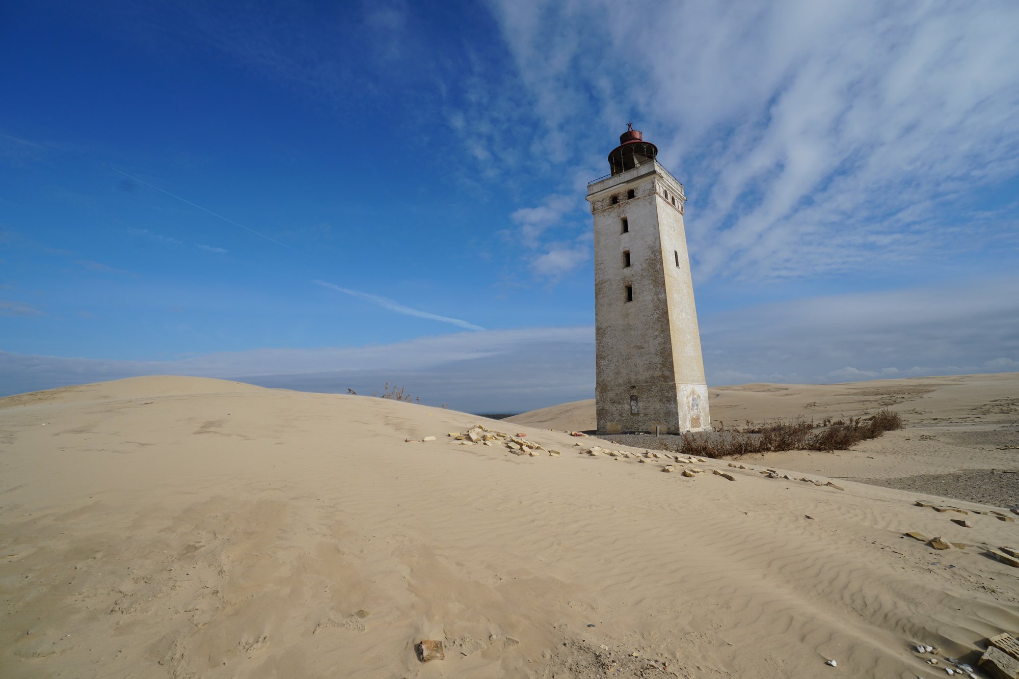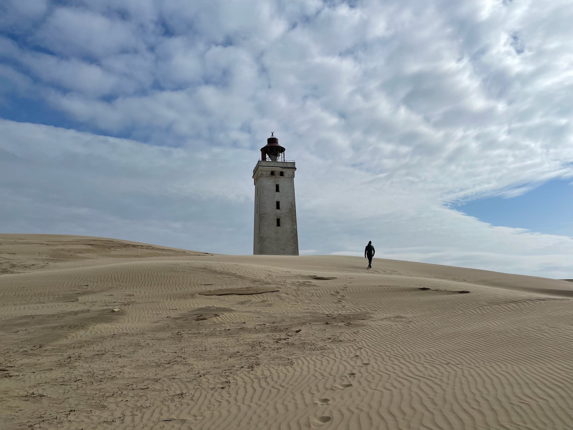 We eindigen de dag met de mooiste en bijzonderste plek van vandaag: Rubjerg Knude Fyr. Deze vuurtoren ligt op een grote zandduin en is door de erosie al een keer verplaatst, omdat hij anders inmiddels in zee zou zijn gestort. Vanaf een parkeerterreintje aan de kust in Lønstrup lopen we langs de kustlijn richting de vuurtoren. Het is gek hoe je van een duin met veel grassen ineens op een kale zandduin staat. Het waait hard en we worden flink gezandstraald. Het zand zit echt óveral. Tip: Zet je zonnebril op en bescherm je camera tegen het zand!