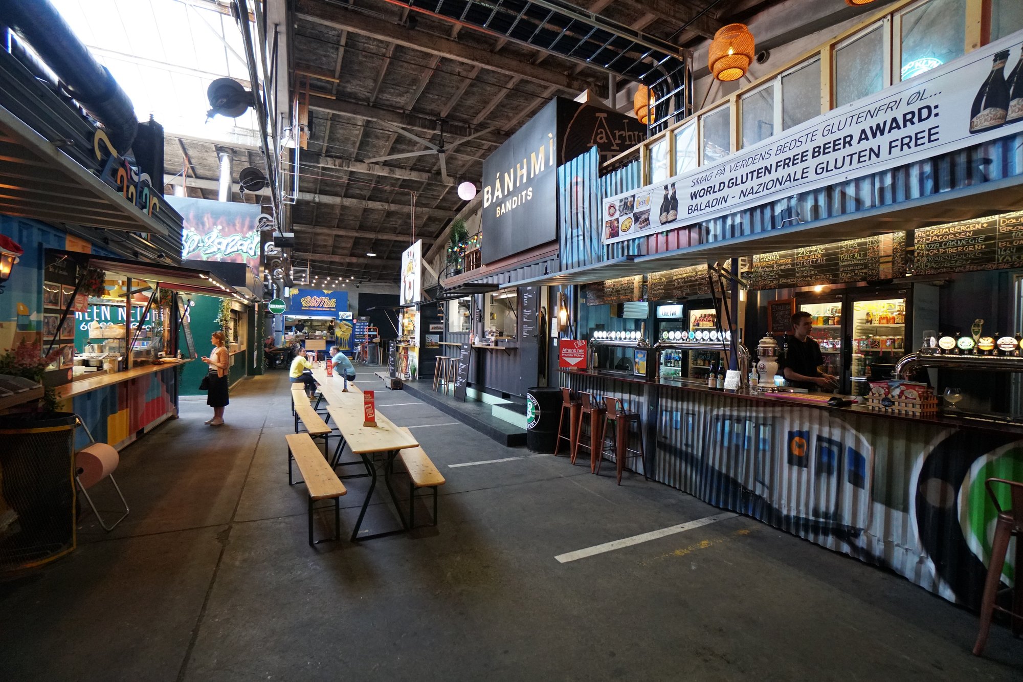 In het zonnetje slenteren we wat door de straatjes. Vooral iets ten noorden van het watertje dat door de stad loopt is er veel gezelligheid te vinden. Sla ook zeker het Aarhus Street Food Center in het voormalige busstation niet over. Ziet er sfeervol uit én er is heel veel lekkers te krijgen!