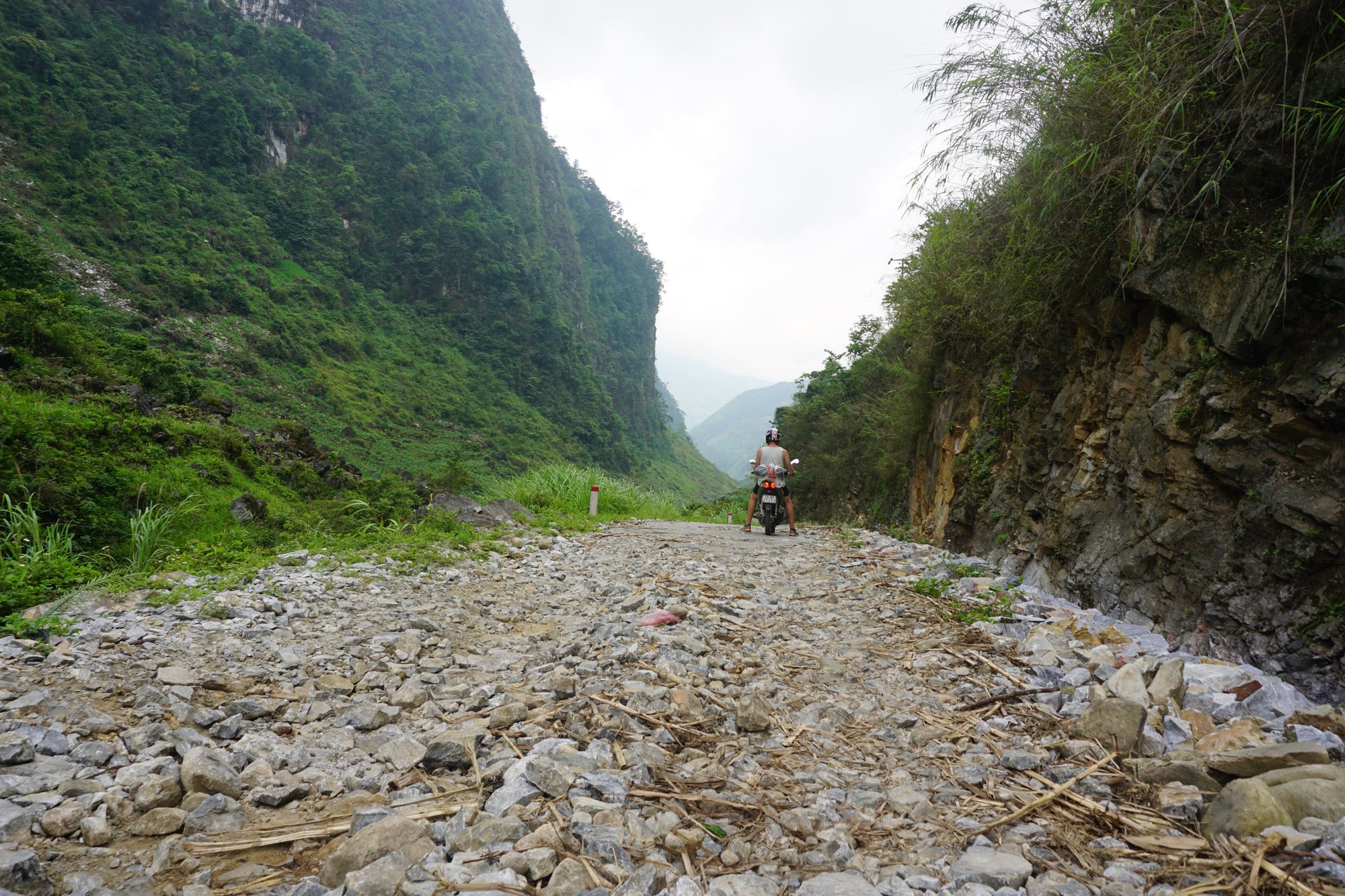 Het komt ook regelmatig voor dat ze wegen gaan vernieuwen, maar niet compleet afsluiten. Dit betekent dat je een stukje over de volledig verbrokkelde weg moet rijden. Doe dit voorzichtig en laat iemand die achterop zit eventueel afstappen. Als je op je gemak de slechte stukken passeert, komt het vaak wel goed.