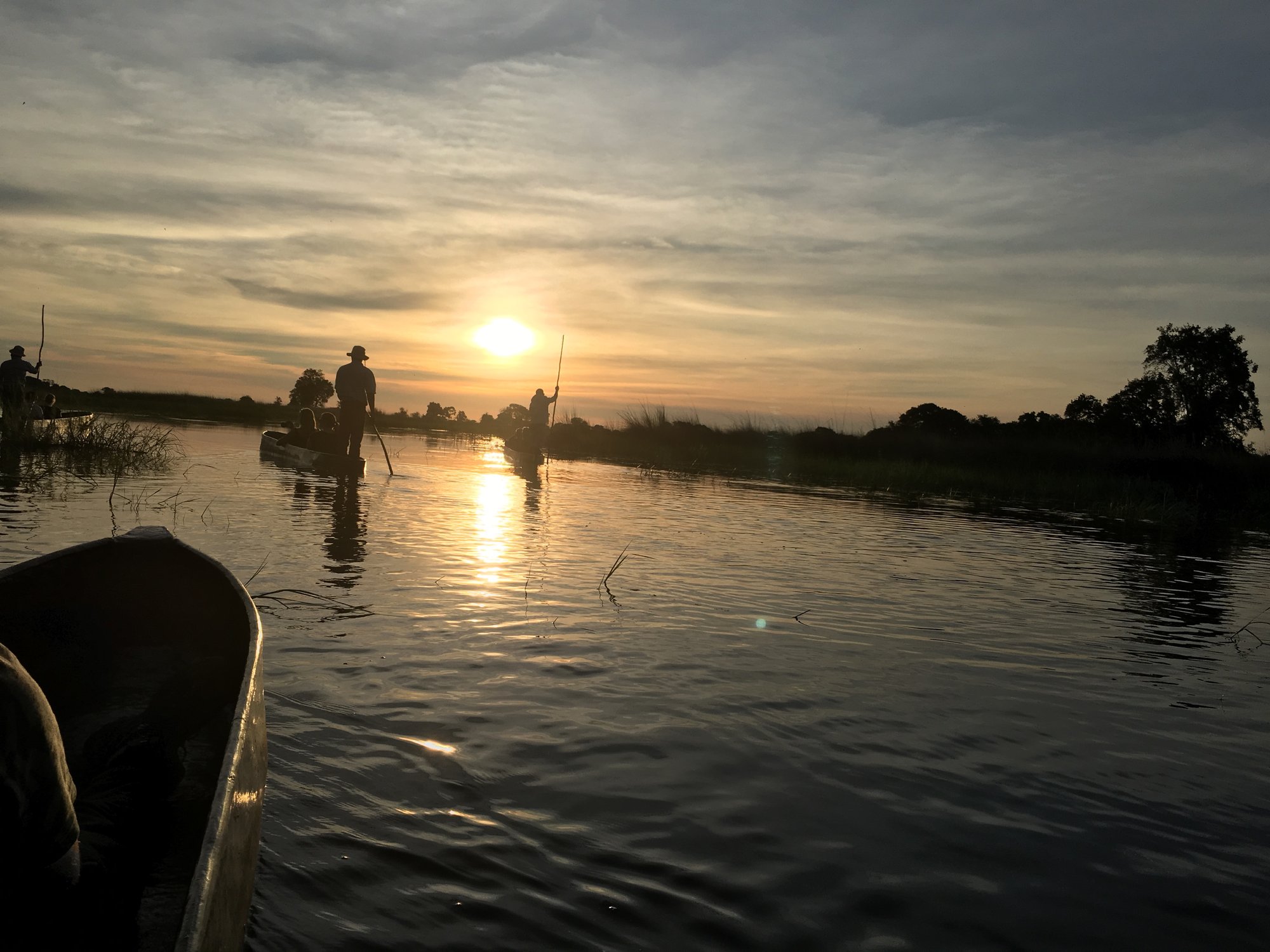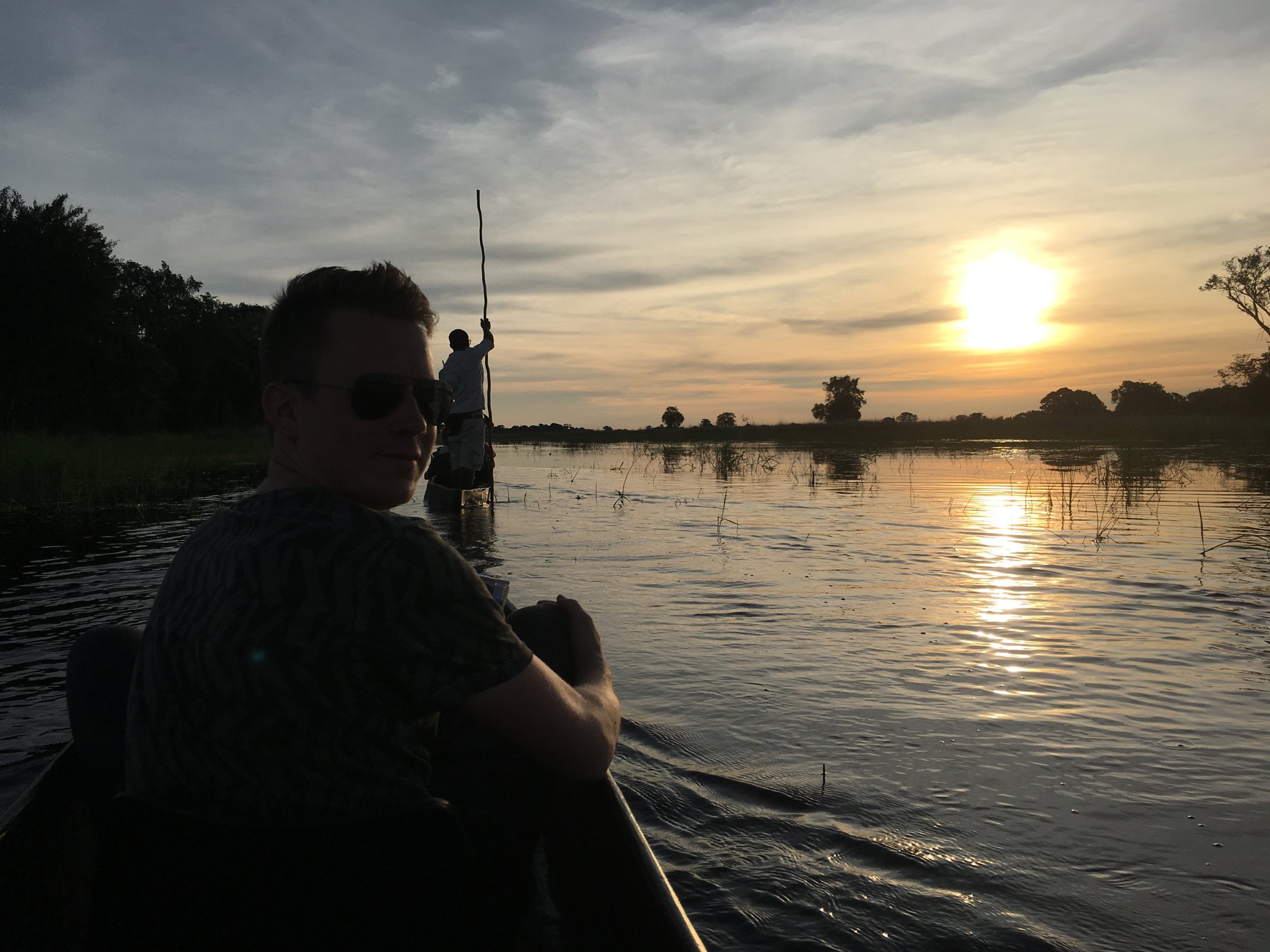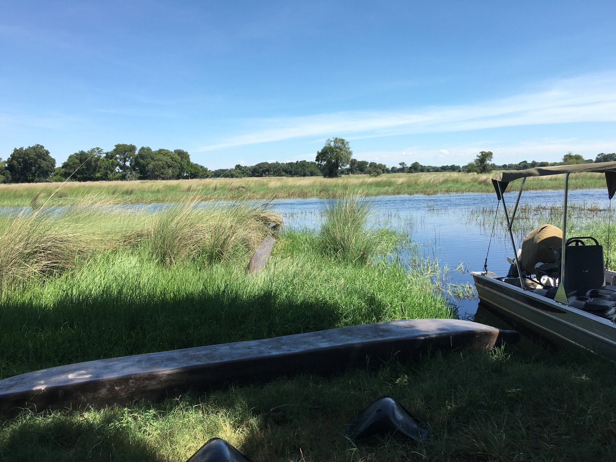 Wij verbleven twee nachten op de camping en hebben deelgenomen aan diverse activiteiten. Zo zijn we enkele keren met een makoro (uitgeholde boomstam) het water op gegaan. In zo’n makoro zit je met zijn tweeën achter elkaar en de gids staat achteraan en duwt je door het ondiepe water met een lange stok. Best spannend, want in dit water zitten ook gewoon krokodillen en nijlpaarden. Wiebelen en je hand even in het water steken is er dus niet bij ;-).
