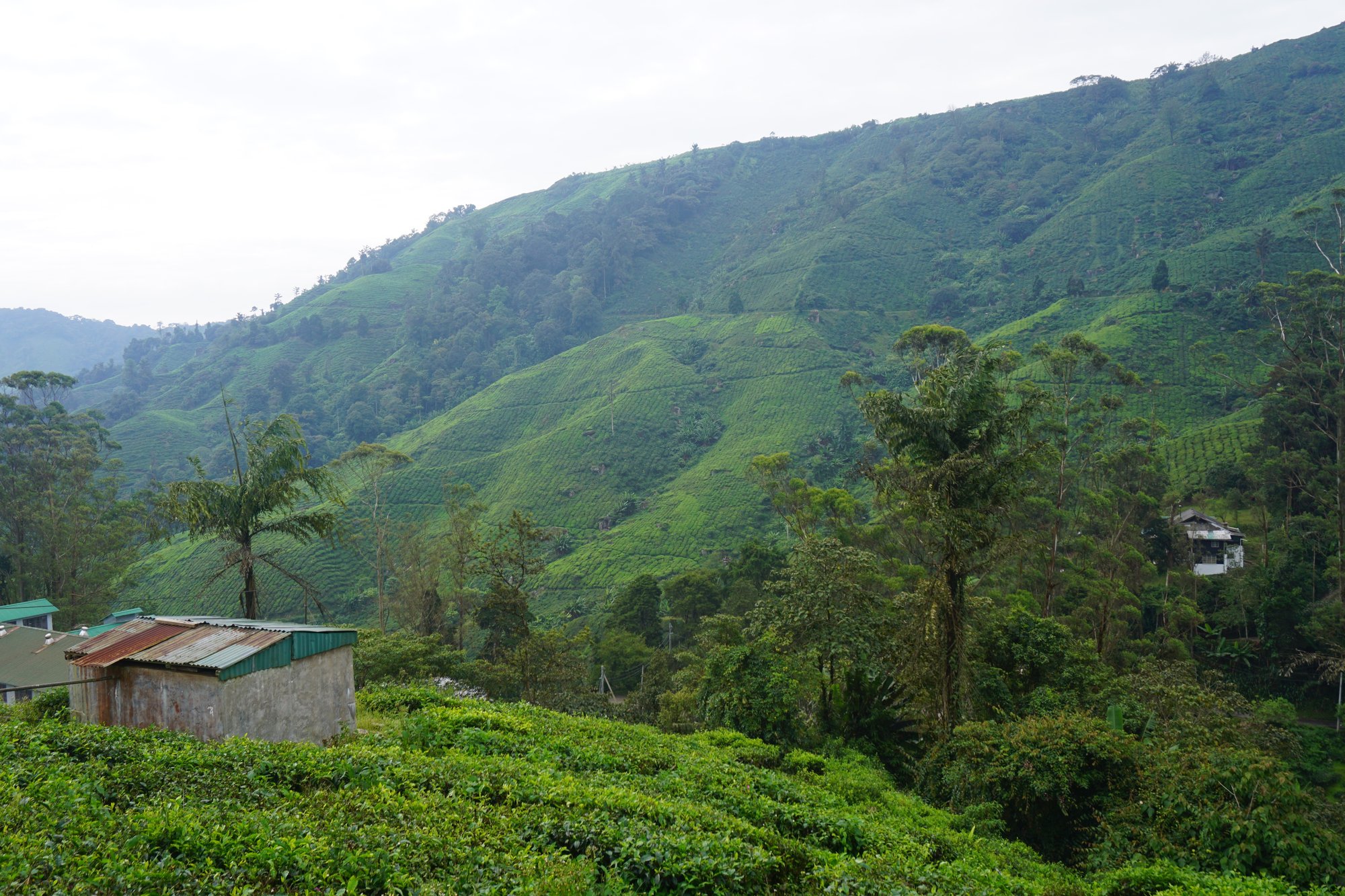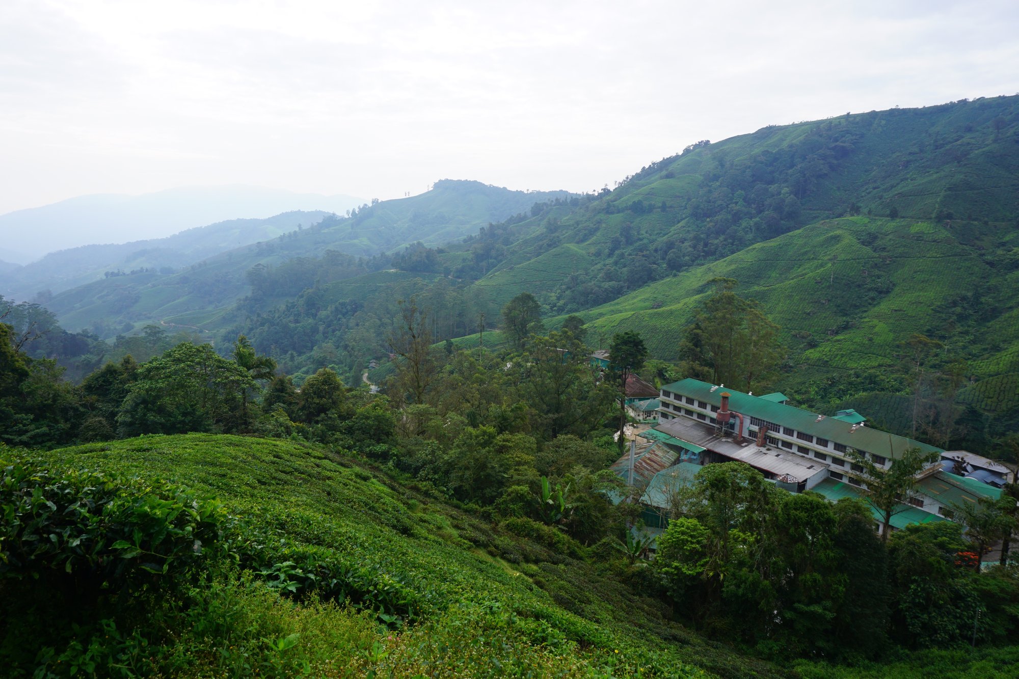 Je hoeft niet ver het dorpje uit te rijden of je ziet al overal om je heen theeplantages. We rijden eerst langs de Cameron Valley en genieten daar van het uitzicht. We zijn lekker vroeg, dus er is nog bijna niemand. Heerlijk!