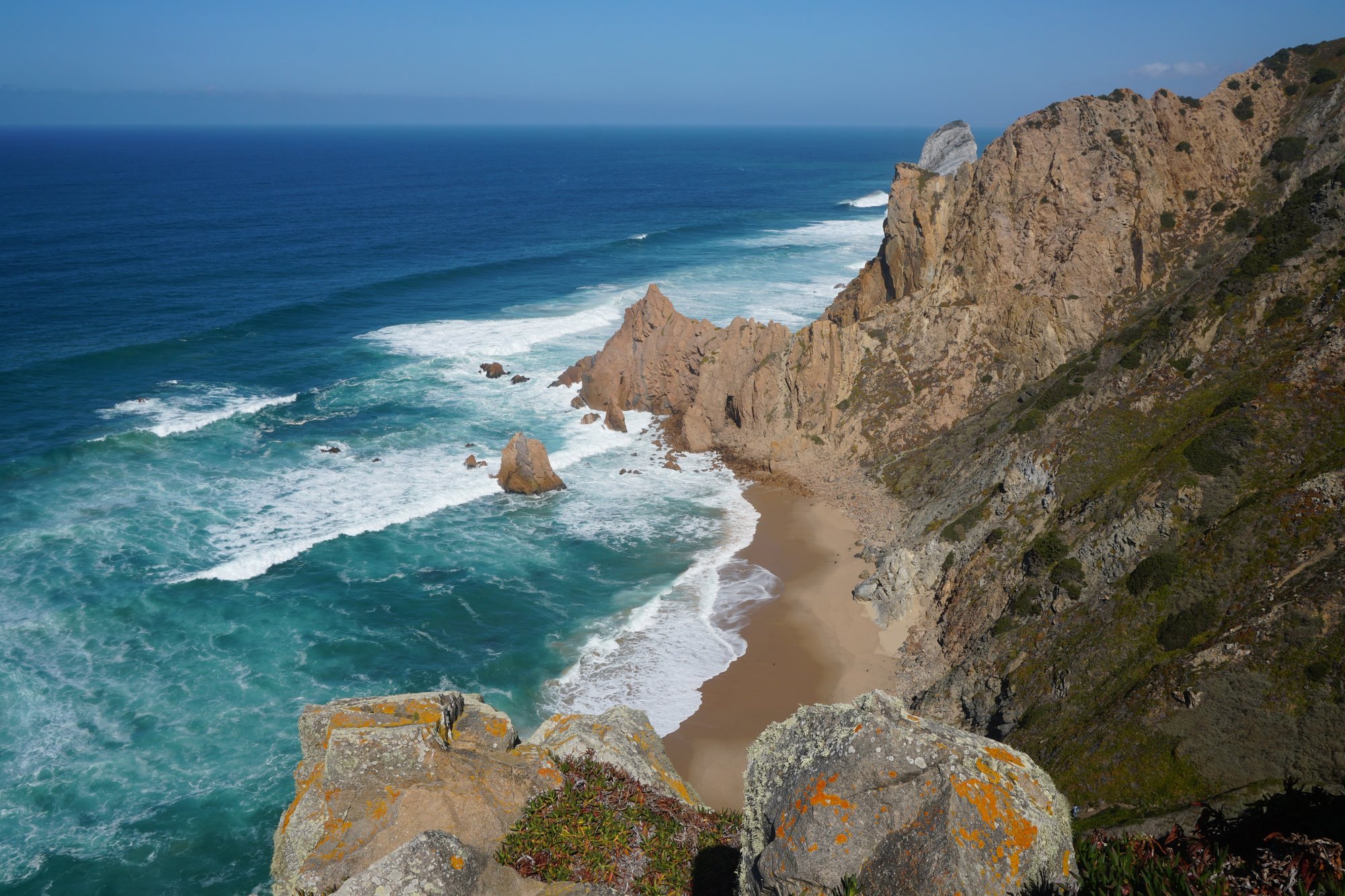 Cabo da Roca vonden wij iets te druk en niet zo heel speciaal, maar de strandjes die verstopt liggen tussen de kliffen zijn fantastisch. Vanaf Cabo da Roca kun je een wandelpad volgen dat je eerst een fenomenaal uitzicht geeft op Aroeira Beach en daarna zie je Ursa Beach liggen. Doordat je alleen te voet bij Ursa Beach kunt komen, is het er een stuk rustiger dan bij andere stranden in de buurt van Cascais. Absoluut de moeite!