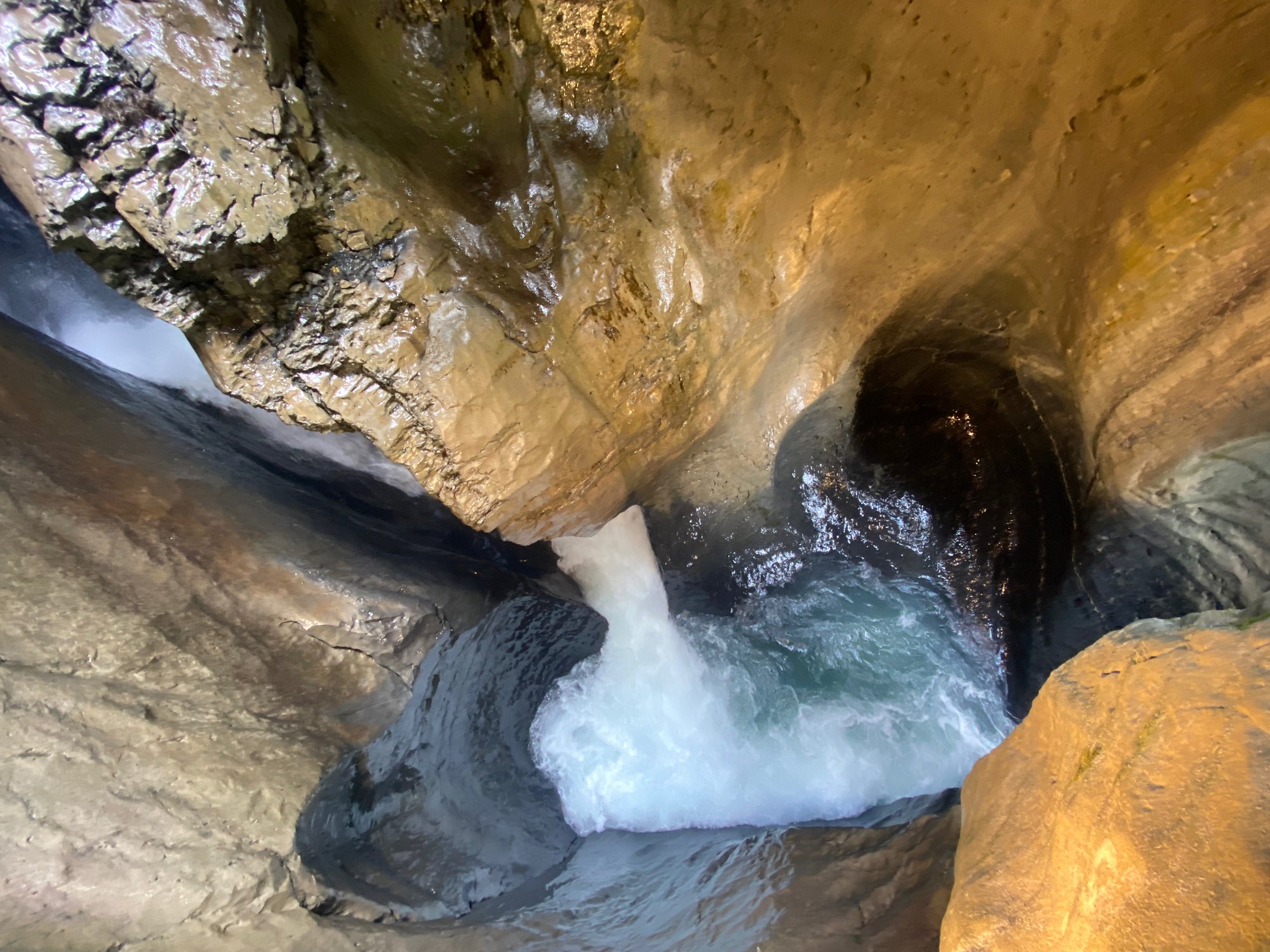 Als we uit de lift stappen, horen we het kolkende water direct. De lift brengt je tot waterval 7 en vanaf daar lopen we omhoog naar de hoogste waterval. Over donkere paadjes in de berg bekijken we de verschillende watervallen. Wat een kracht! Het geluid van deze waterval zorgt ervoor dat je beseft hoeveel en hoe hard het water door deze kloof beweegt. Gemiddeld is de stroomsnelheid 72 kilometer per uur en komt hier iedere seconde 20.000 liter water voorbij. En dat hoor je echt wel. Indrukwekkend!