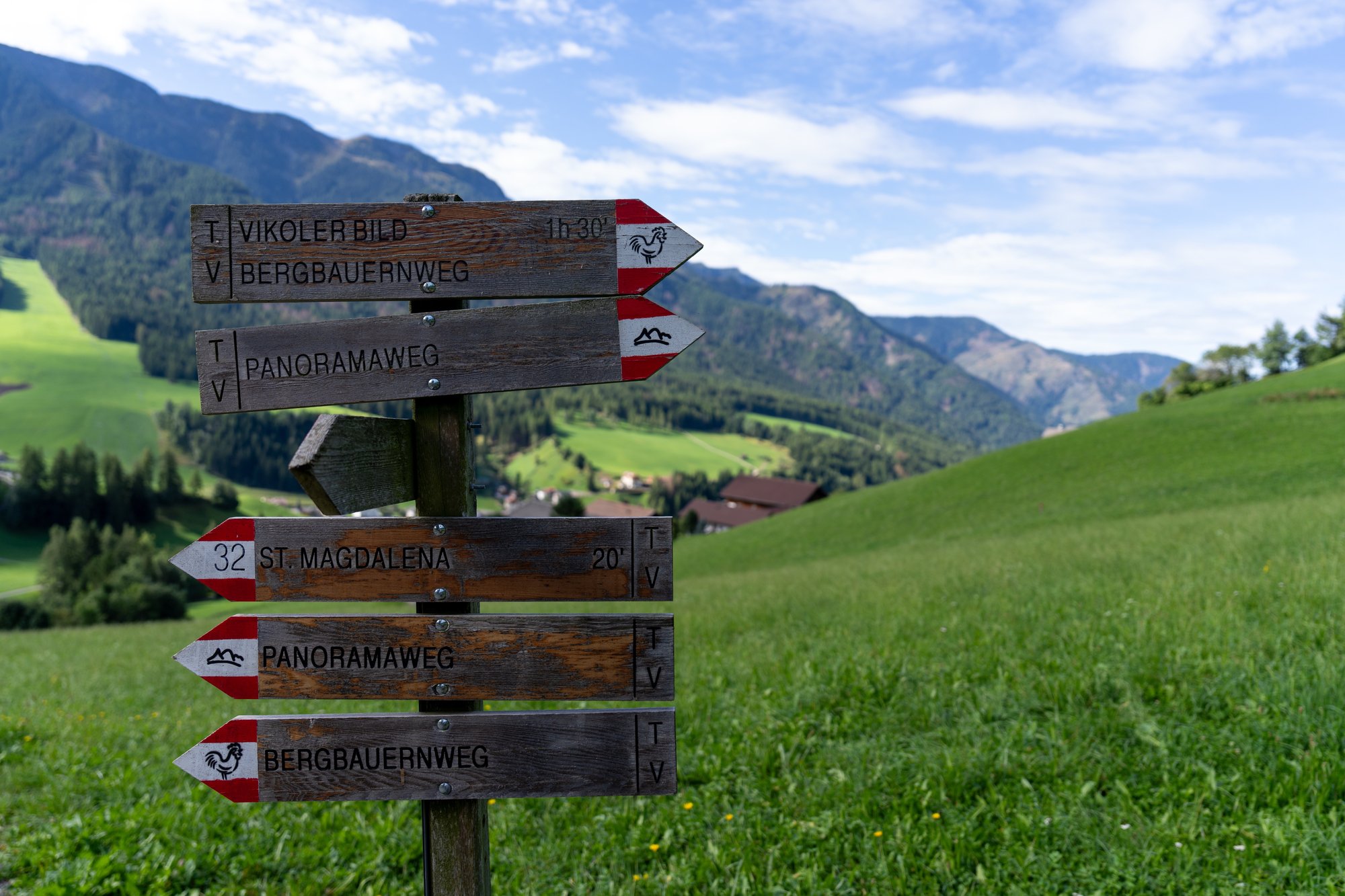Maar als je wel de tijd hebt, dan is het leuk om de Panorama Trail te volgen. Op een gegeven moment kom je bij een bordje richting de Sunnseitenweg. Volg die en je komt na een paar kilometer weer bij Santa Maddalena uit.