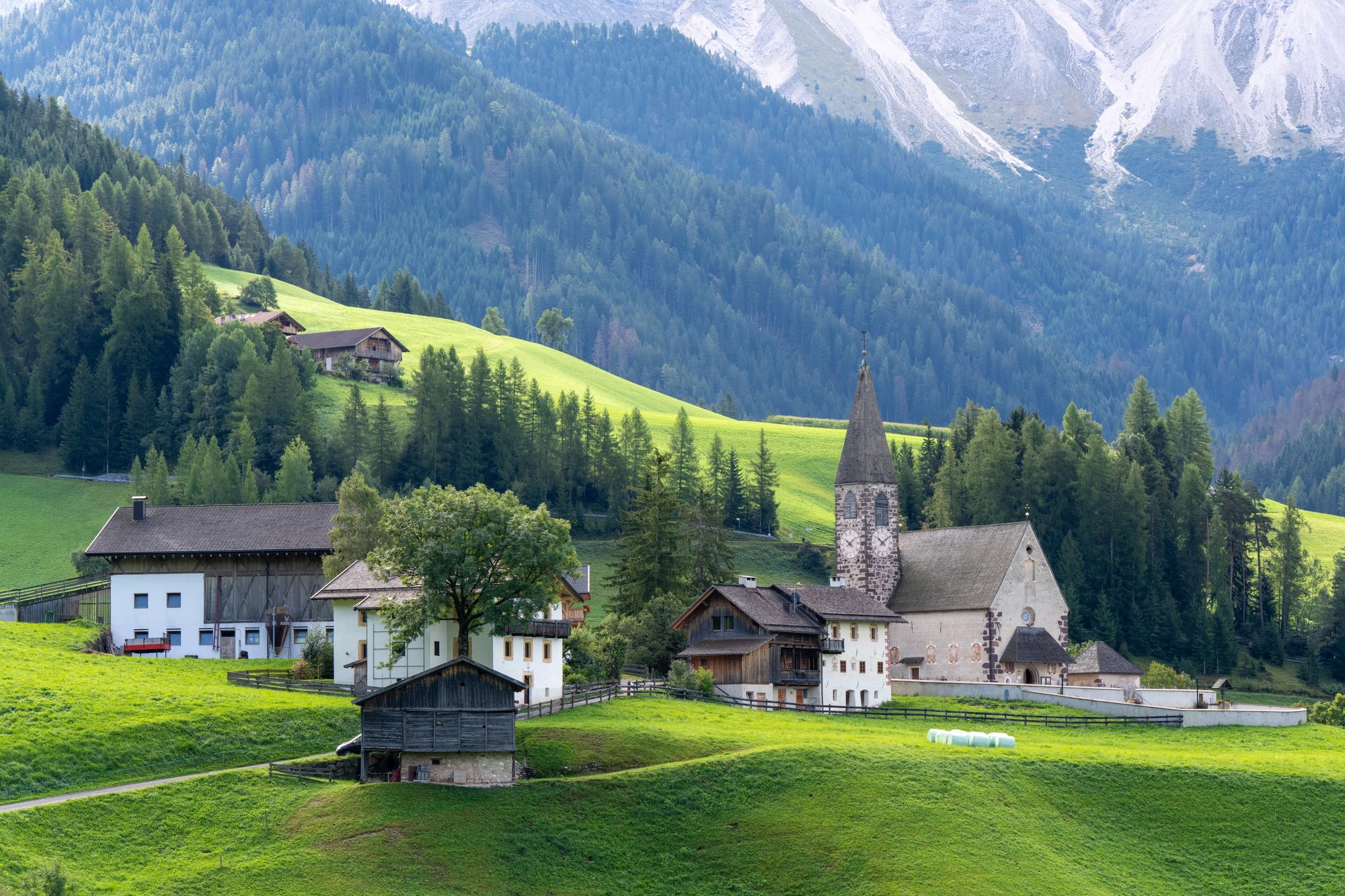 Als we over de hoger gelegen weg SP163 richting Val di Funes rijden, zien we het dorpje Santa Maddalena al liggen. Het dorpje ligt tussen de glooiende weilanden en is beroemd om haar pittoreske kerkje en de overweldigende, kale bergen die iets verderop liggen. Dit zou zo op een ansichtkaart kunnen!